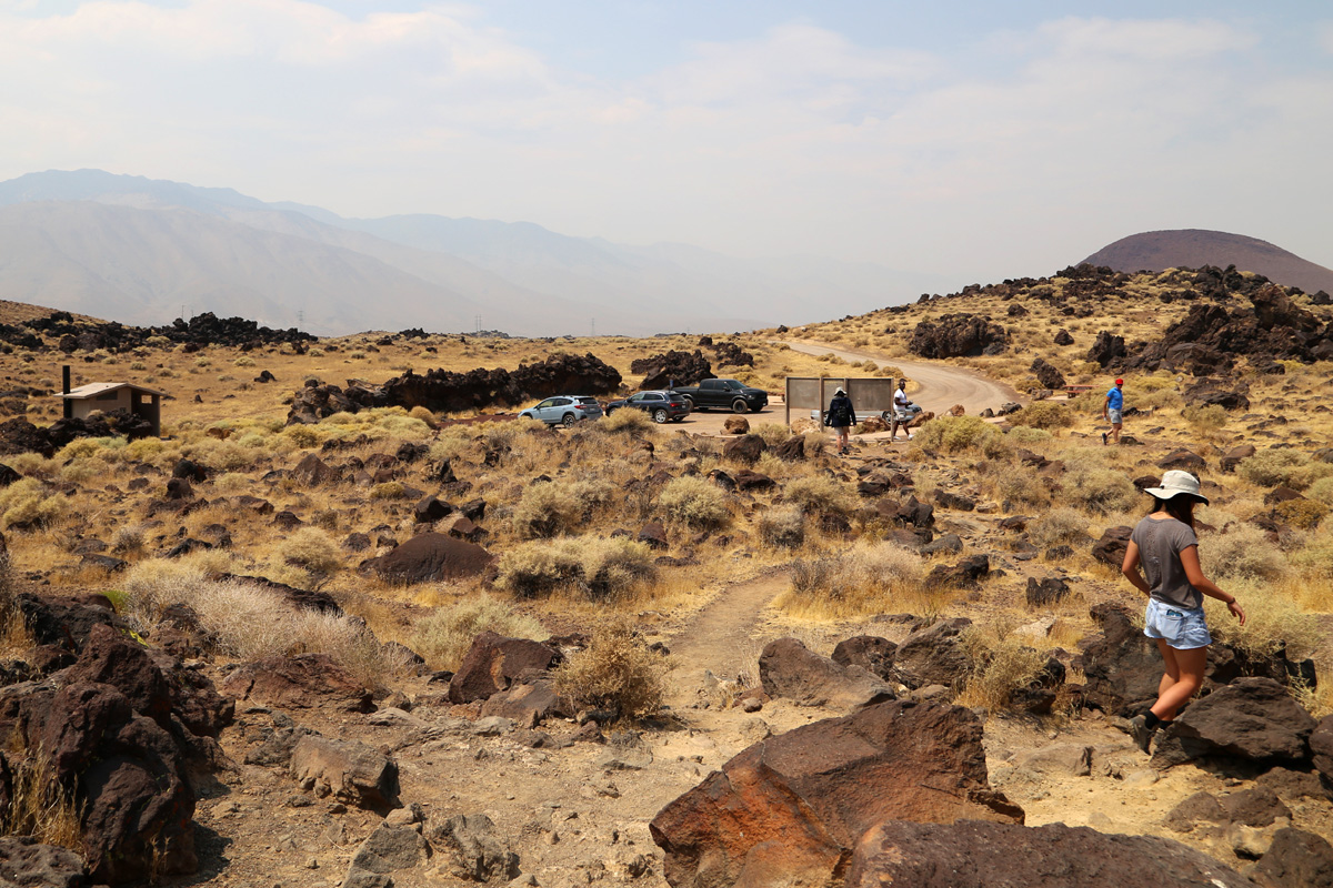 여기까지 내려온 산불 연기와 화씨 100도가 넘는 더위에 오래 있기가 힘들어서 그만 주차장으로 돌아가기로 했다.