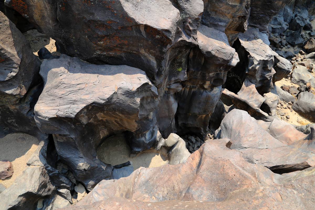 그러다가 이렇게 검은 화산암이 기묘하게 깍여서 만들어진 절벽이 나오면 '화석이 되어버린 폭포'에 도착한 것이다.