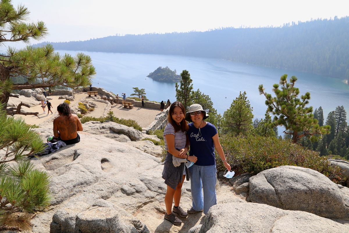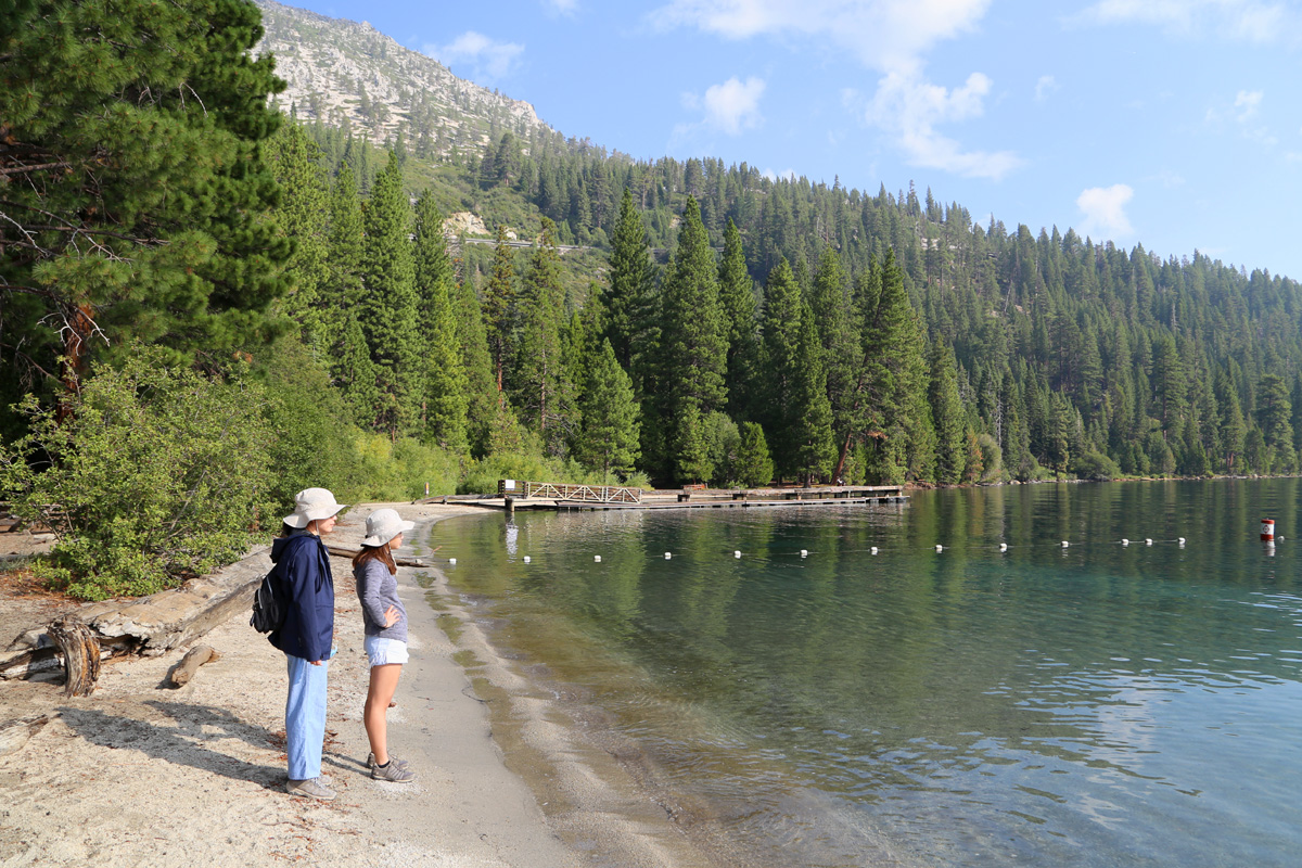 북부 캘리포니아와 네바다 주경계의 해발 1,897m에 위치한 레이크타호(Lake Tahoe)는 서울특별시 면적의 약 80%나 되는 북미대륙에서 가장 큰 산정호수(alpine lake)이다. 일찌기 1860년대부터 휴양지로 개발되어서, 1960년 동계올림픽이 열린 Olympic Valley 등 많은 스키장이 있고, 수상스포츠와 등산도 인기있는 사계절 휴양지이다. 총 길이 114km 호숫가의 약 2/3는 캘리포니아에, 나머지는 네바다에 속하는데, 우리가 9박10일 여행의 두번째 밤을 보낸 사우스레이크타호(South Lake Tahoe)가 호숫가에서 가장 큰 도시이다.