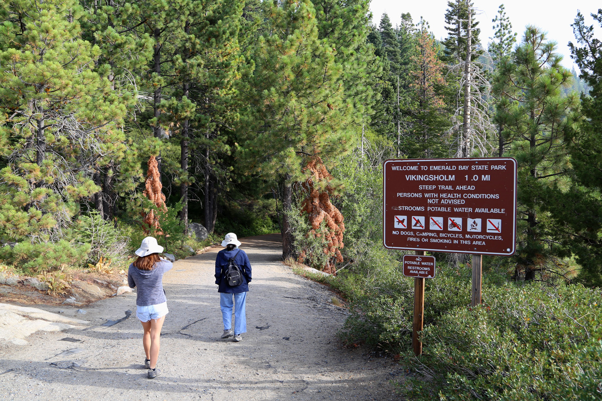 주차비 10달러 영수증을 자판기에서 끊어서 차에 놓아두고, 우리는 호숫가로 걸어서 내려간다. 호숫가 저택인 바이킹스홀름(Vikingsholm)까지는 1마일의 넓은 길이지만 경사가 제법 있어서, 다시 올라올 때는 힘이 좀 든다.