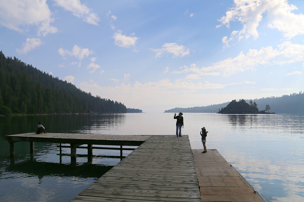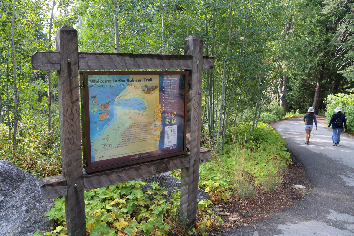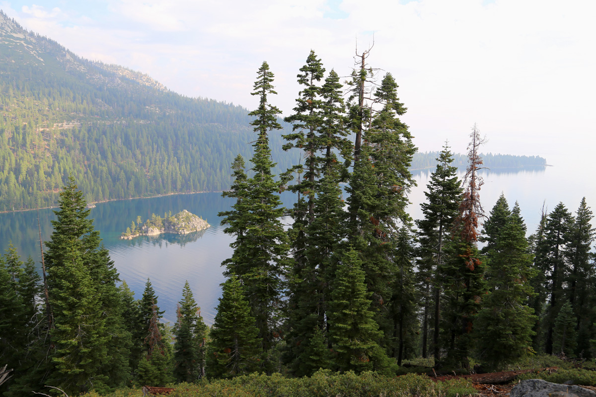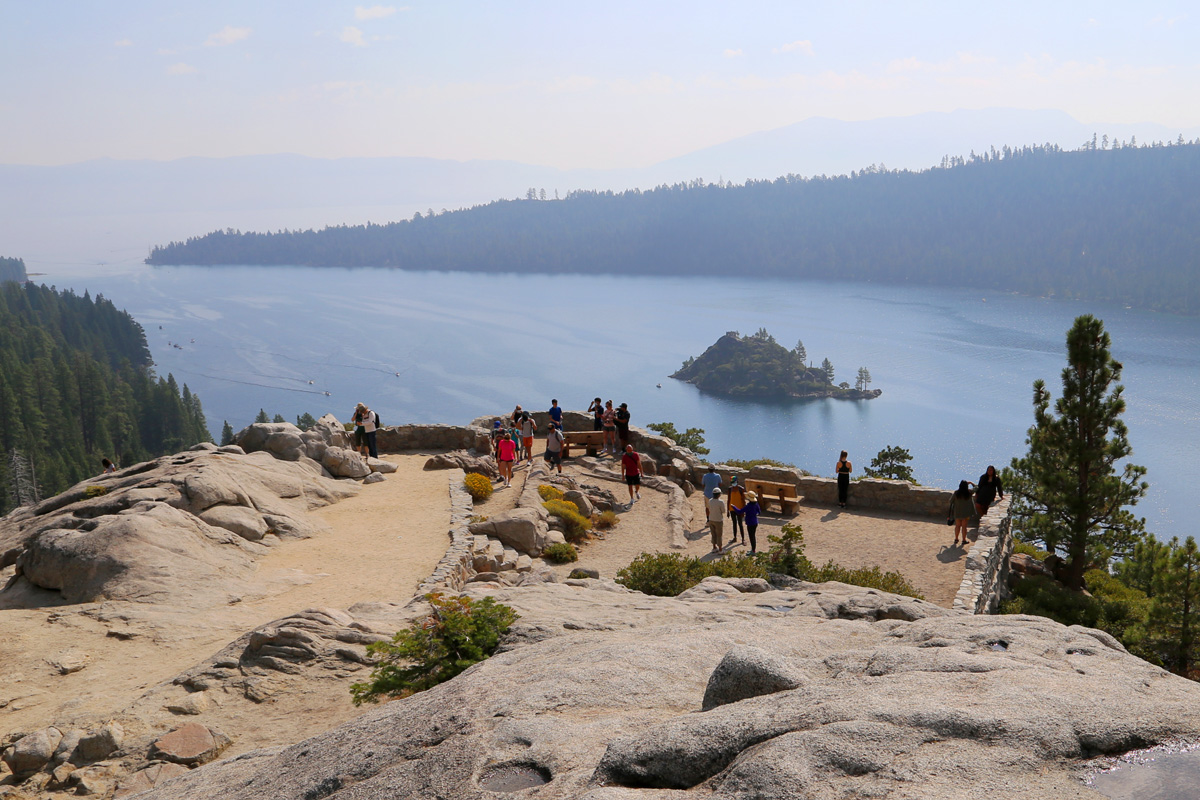 에머랄드베이 주립공원(Emerald Bay State Park)의 메인 주차장에 도착을 했다. (구글맵으로 위치를 보시려면 클릭) 여기서 산쪽으로 올라가는 등산로는 이글 폭포(Eagle Falls)와 호수를 지나서, 레이크타호를 둘러싼 산들의 정상을 모두 한바퀴 도는 전체 길이 266km의 타호림트레일(Tahoe Rim Trail)과 만나게 된단다. 또 그 타호림트레일의 여기 남서쪽 구간은 미서부를 종단하는 퍼시픽크레스트트레일(Pacific Crest Trail, PCT)의 일부라고 하는데... 과연 저 바위산들 너머 하이킹을 할 수 있는 기회가 앞으로 있을까?