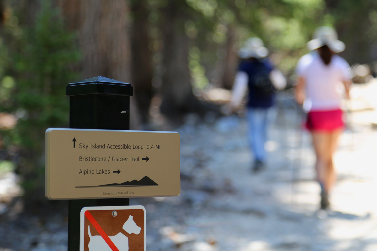 첫번째 갈림길에서 우리는 오른쪽으로~ 그런데, 여러 국립공원을 다녀봤지만 올라온 도로와 트레일의 표지판이 상당히 특이했다. 내셔널파크들은 모두 연방정부 내무부 산하 국립공원청(National Park Service, NPS)에서 관리를 하지만, 이런 표지판같은 세부적인 부분은 주(state)마다 차이가 있는 것도 재미있다.