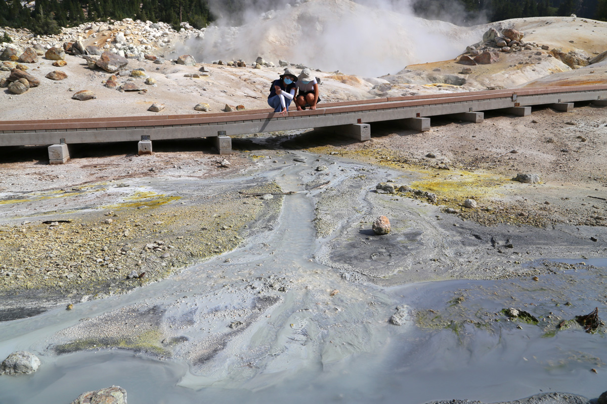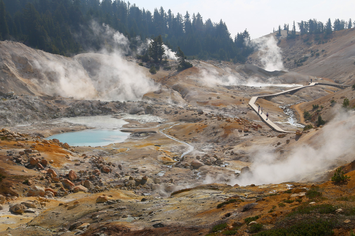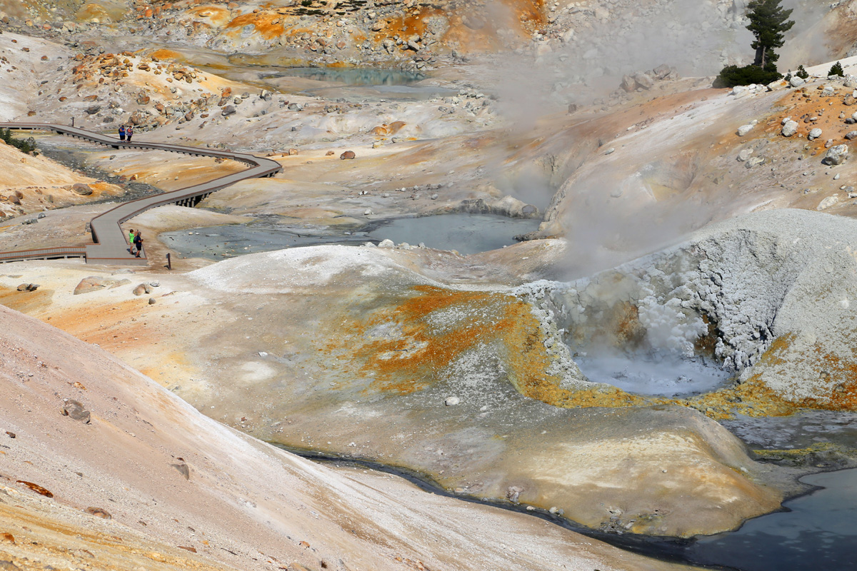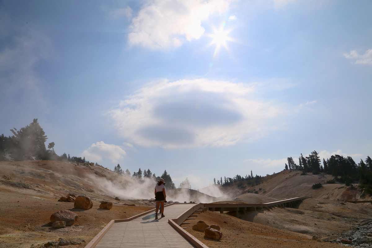 곳곳에서 연기가 피어오르는 이 분지는 래슨볼캐닉 국립공원에서 가장 넓은 열수지역(hydrothermal area)으로 소위 '캘리포니아의 옐로우스톤'이라 불리는 곳이다. (구글맵으로 위치를 보시려면 여기를 클릭)