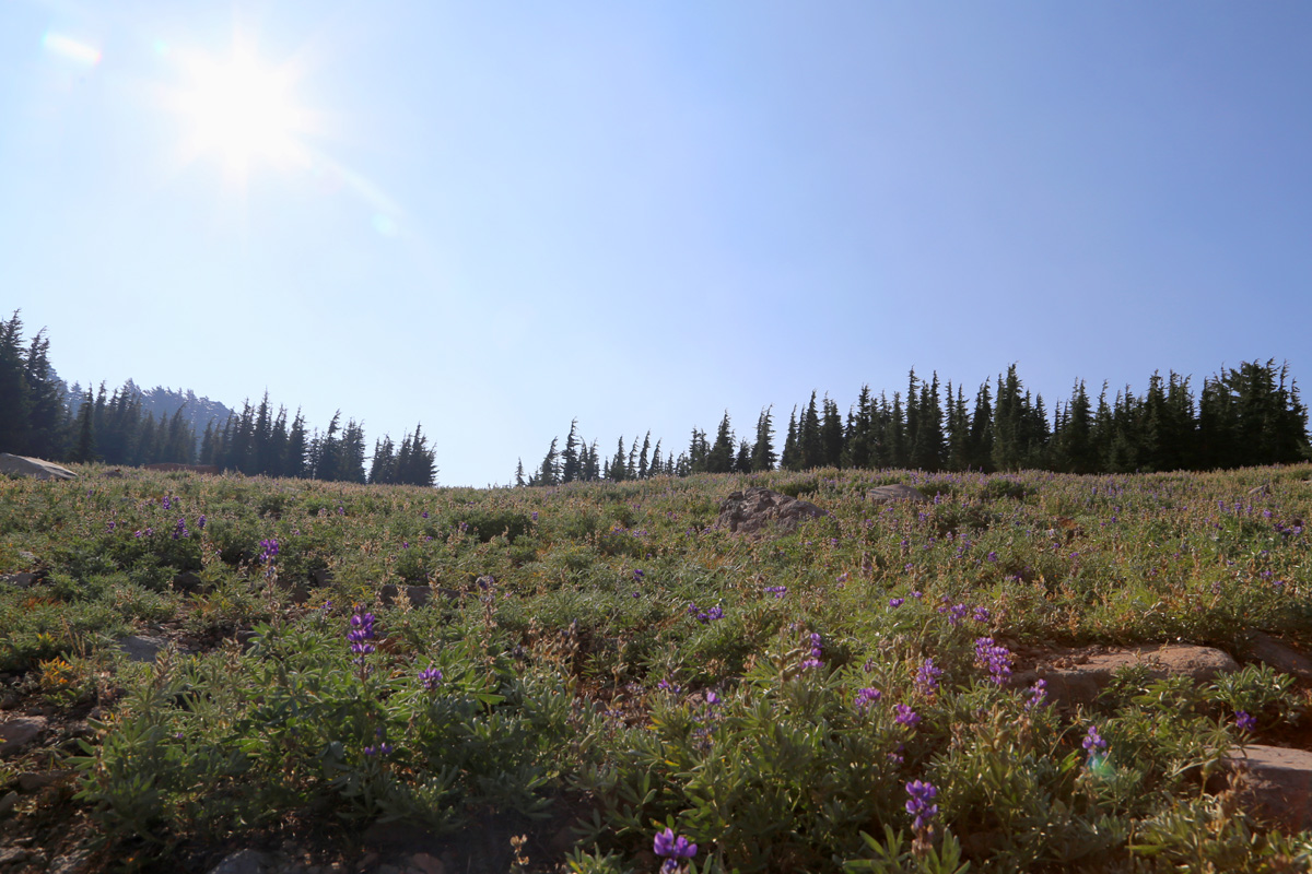 철이 좀 지난 듯 했지만, 나지막한 보라색 루핀(Lupine) 꽃을 보니까 우리가 북쪽으로 많이 올라왔다는 생각이 들었다. 그렇게 천천히 30분 정도 평탄한 트레일을 걷다보면 바람에 실려온 유황냄새를 먼저 코로 느낀 후에,