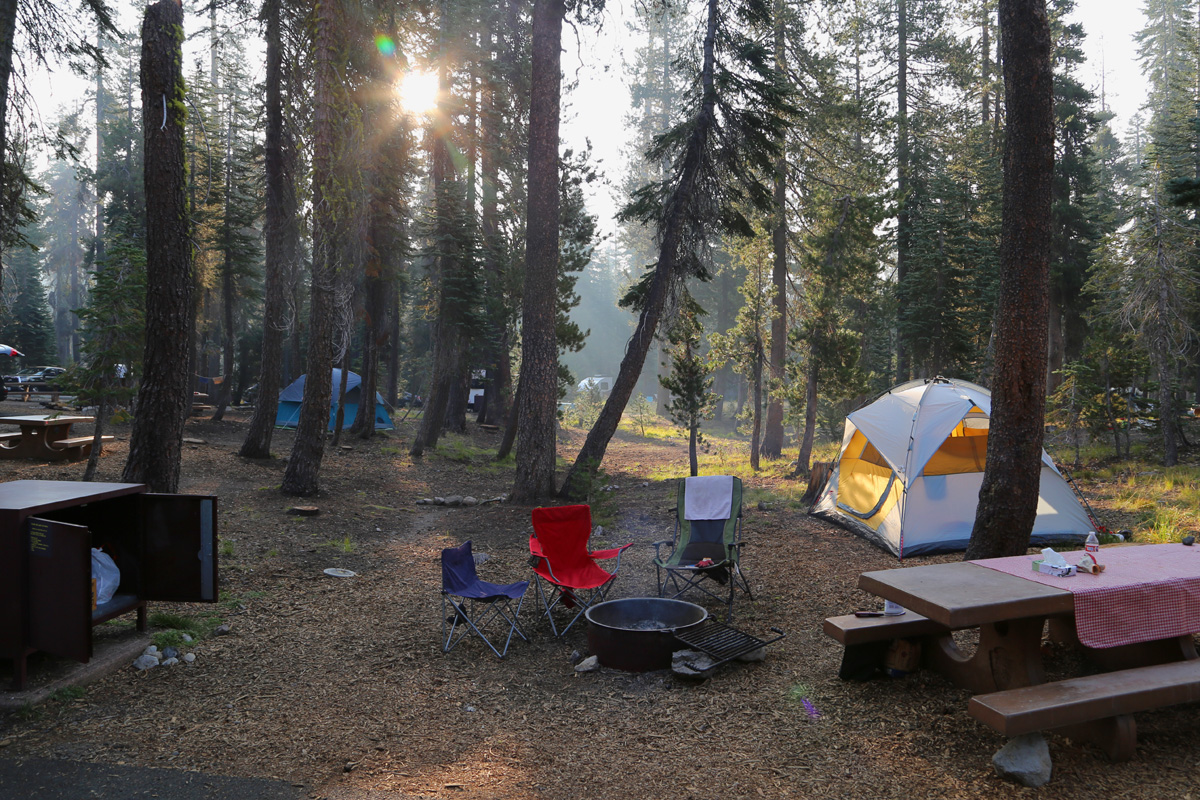 9박10일 자동차 캠핑여행의 4일째인 화요일, 해발 2,040 m의 서밋레이크노스(Summit Lake North) 캠핑장에 아침해가 떠올랐다. 누룽지를 끓여 아침으로 먹고는 이 국립공원에서 가장 인기있는, 그래서 일찍 안가면 주차장에 빈 자리가 없다는 범패스헬 트레일(Bumpass Hell Trail)을 하러갔다.