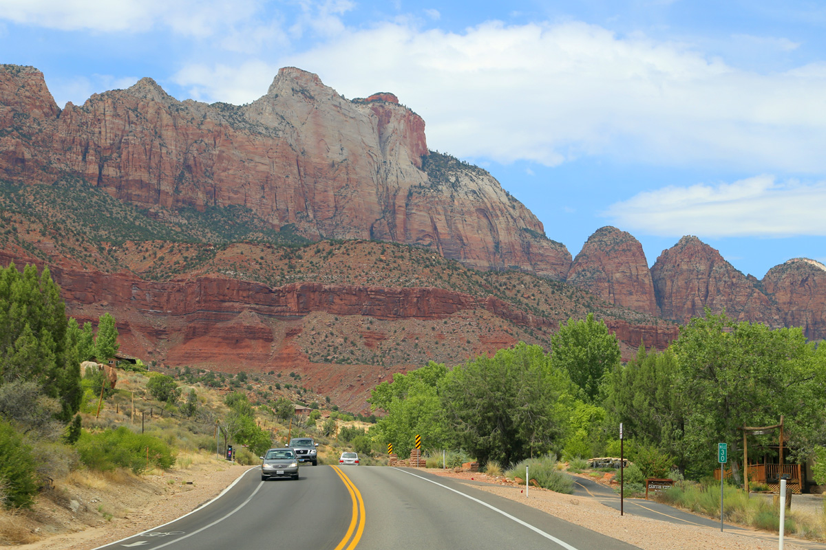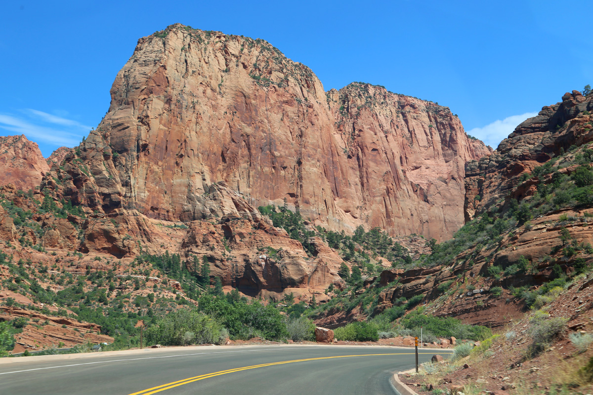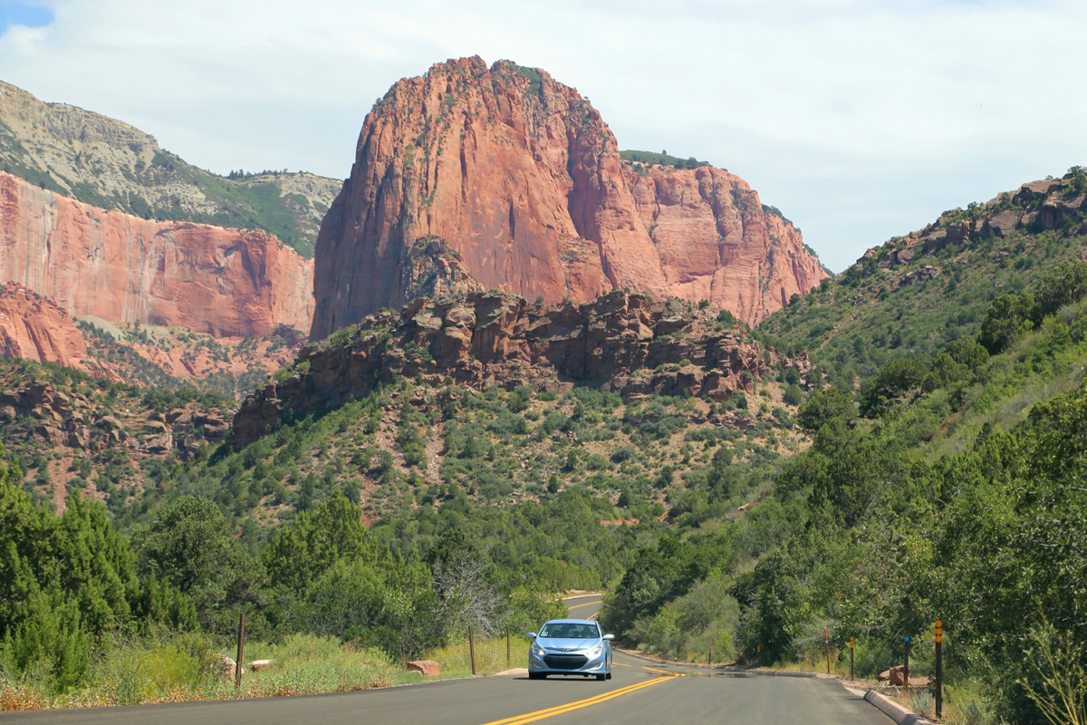 9번 도로를 타고 자이언캐년 입구로 향하면서 보이는 바위산의 느낌은 콜롭캐년과는 확실히 다른 느낌인 것을 알 수 있다.