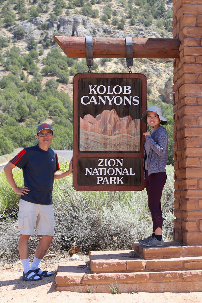 고속도로 인터체인지를 나가자마자 만날 수 있는 멋진 국립공원 입구간판의 모습이다. 눈썰미가 좋으신 분은 눈치를 채셨겠지만, 간판을 보면 정확히는 콜롭캐년스(Kolob Canyons)라고 복수형으로 되어있다.