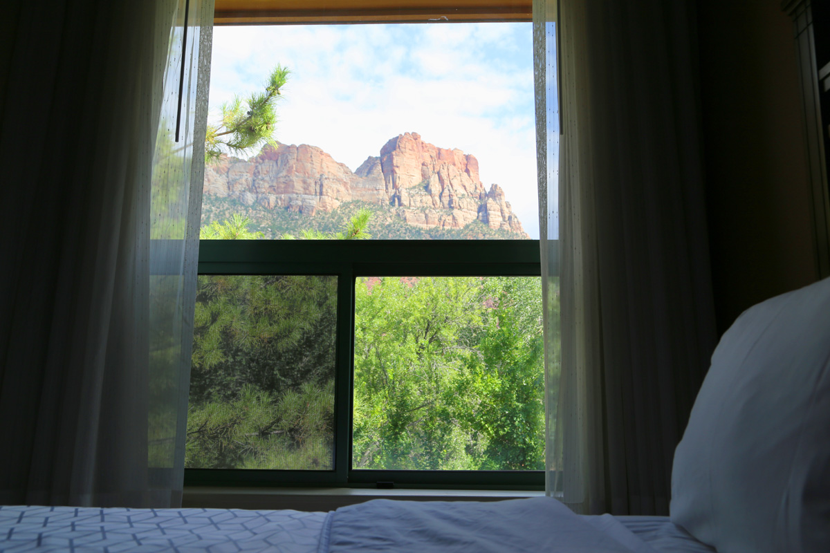 이렇게 침대에 누워서 자이언의 바위산이 보이는 객실에서 9박10일 자동차여행의 마지막 이틀밤을 보냈다.