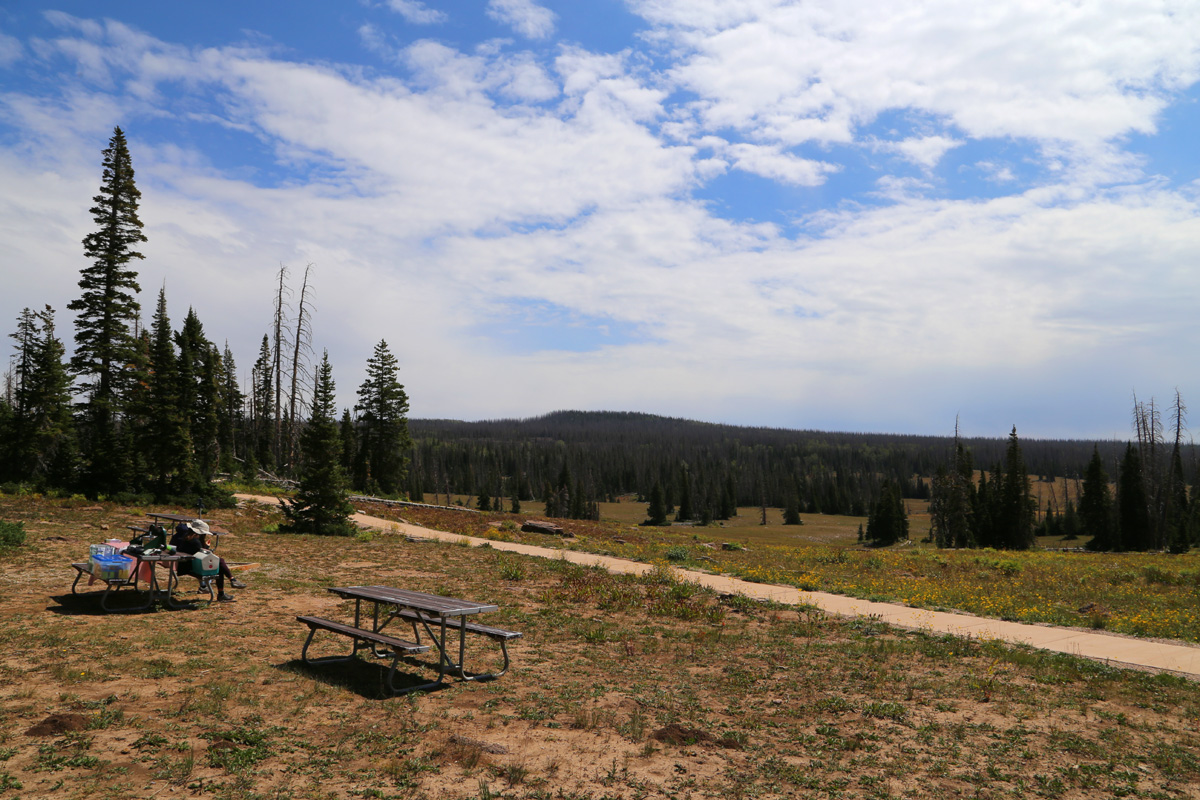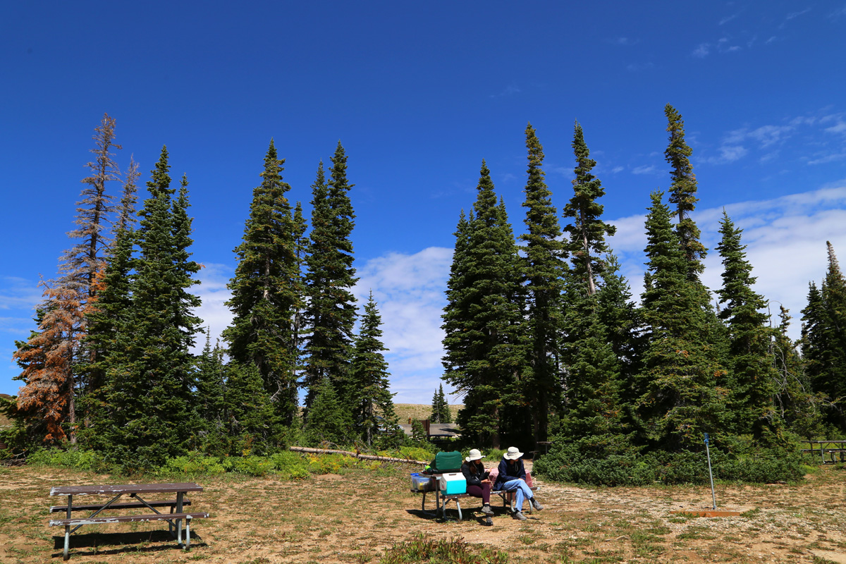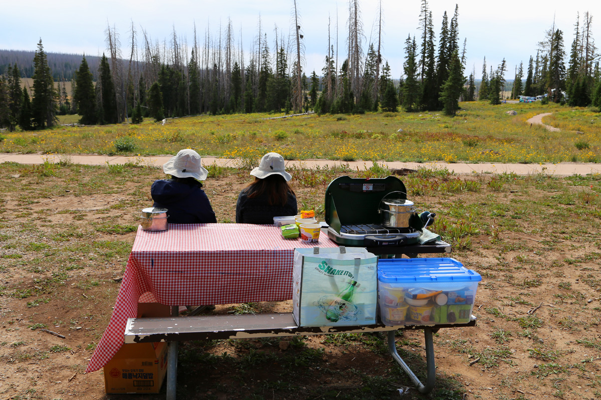 여기 준국립공원 안의 유일한 캠핑장인 Point Supreme Campground의 입구에 있는 피크닉에리어에 자리를 잡았다. 앞서 언급한 것처럼 여기는 해발 3천미터가 넘는 고지대로 겨울에는 춥고 눈이 많이 오기 때문에, 캠핑장은 6월중순부터 9월말까지만 운영을 한단다. 그런데, 여름에도 밤에는 엄청 추울 것 같다.