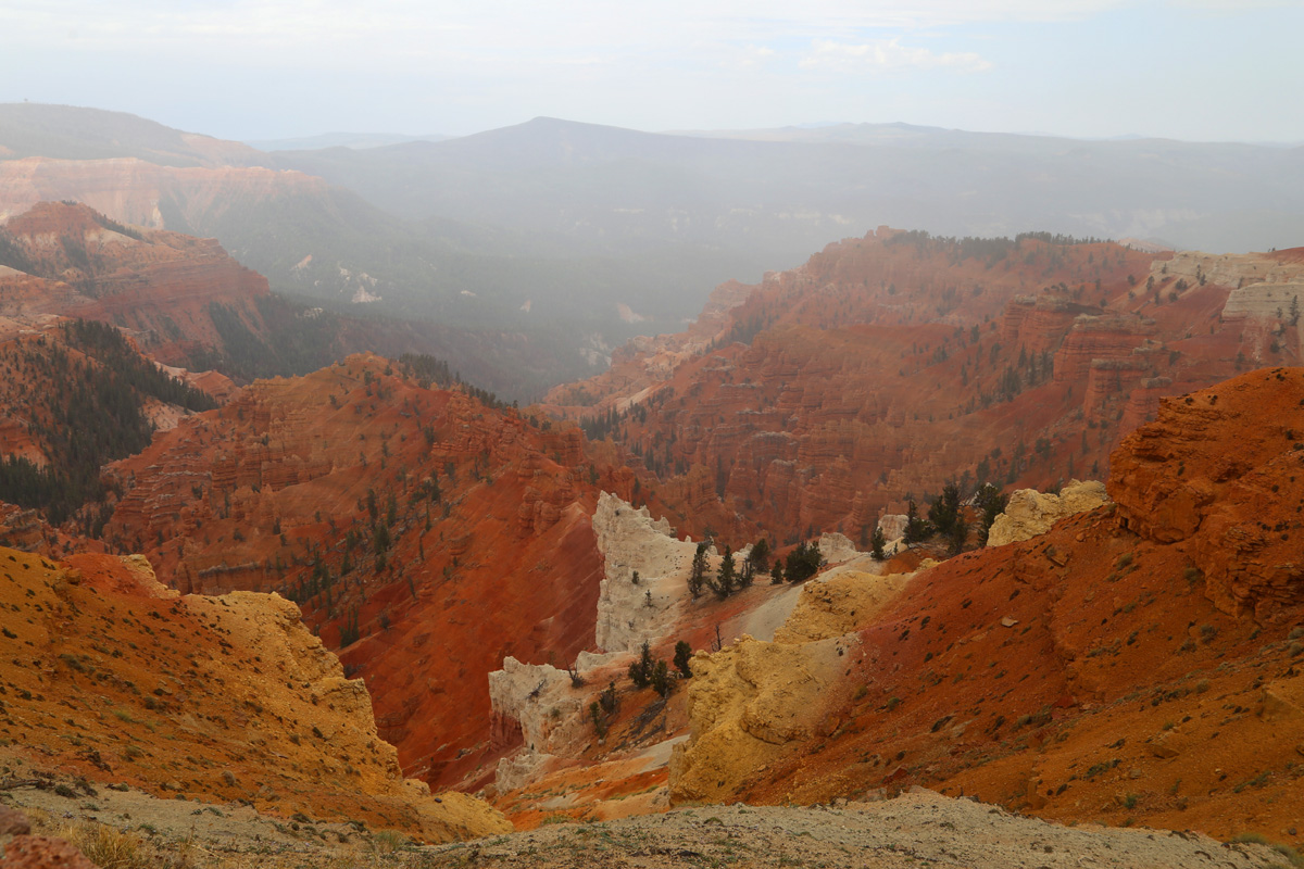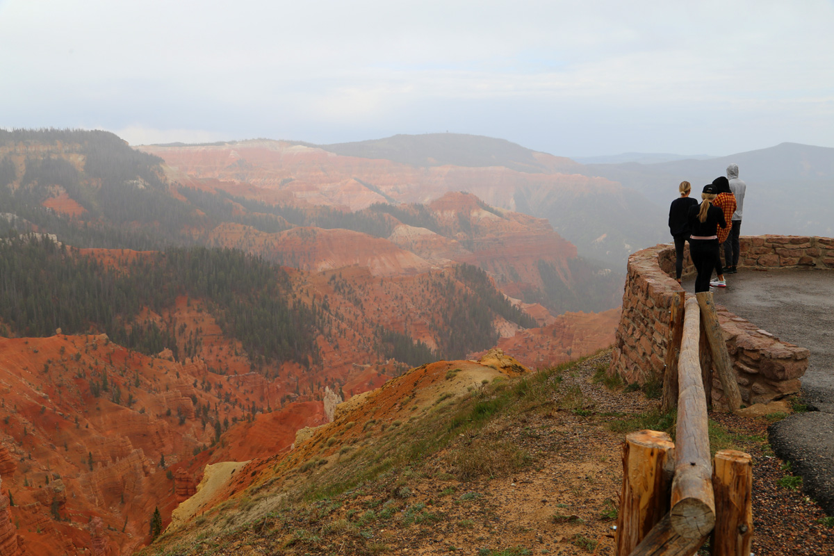 9박10일 자동차여행의 8일째, 아침에 네바다 주의 그레이트베이슨 국립공원을 출발해 유타 남서부의 황무지를 가로질러 15번 고속도로와 만나는 파로완(Parowan) 마을을 지나서 북쪽 입구에 도착을 했는데, 산을 올라오면서부터 조금씩 내리던 비는 이 때쯤에는 거의 폭우처럼 내리고 있었다.