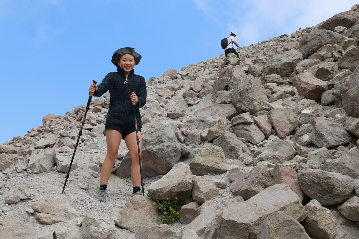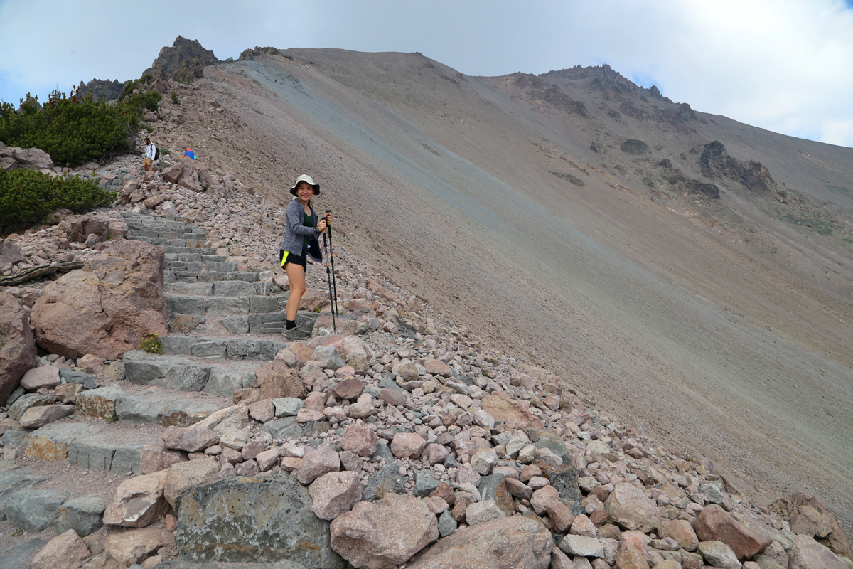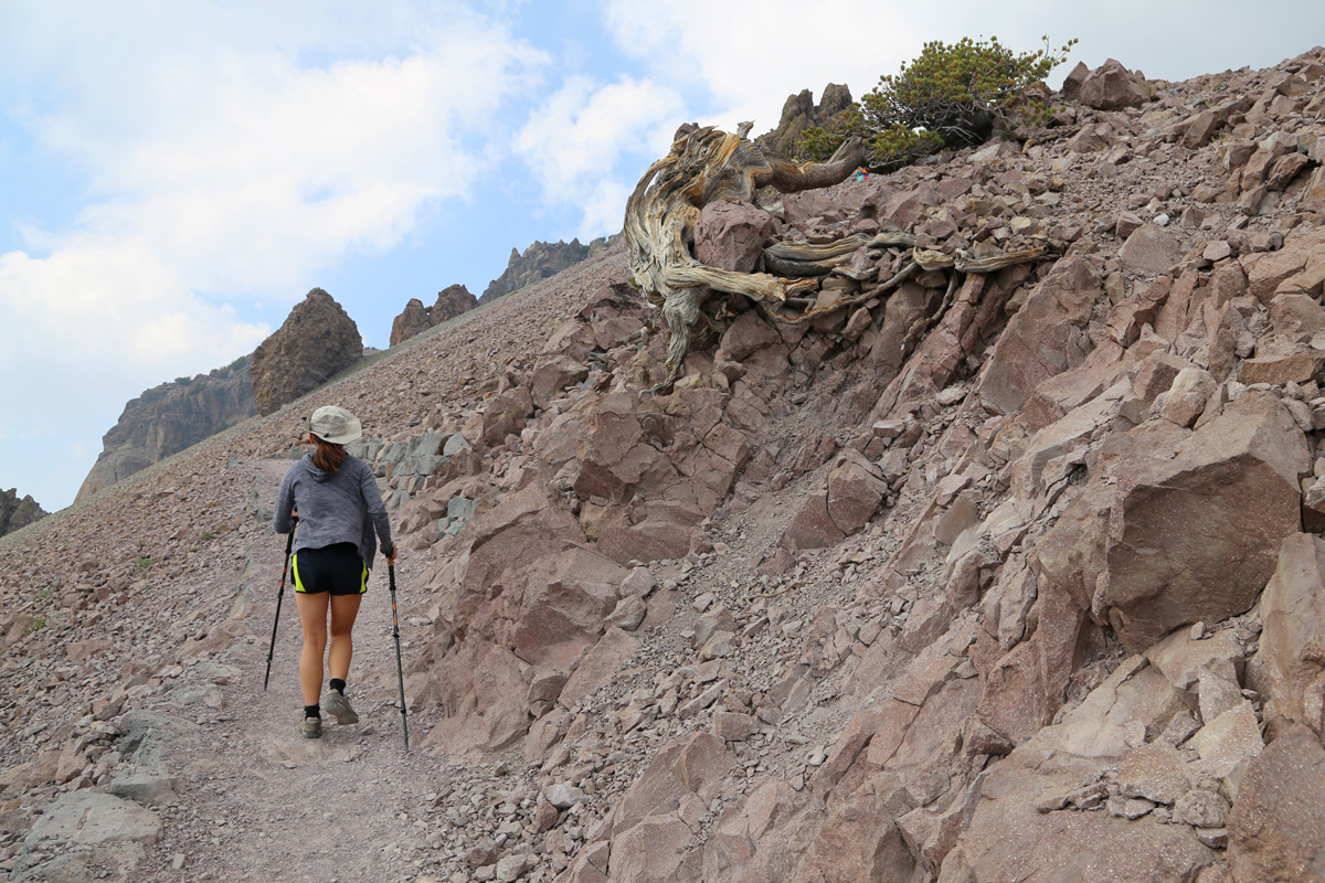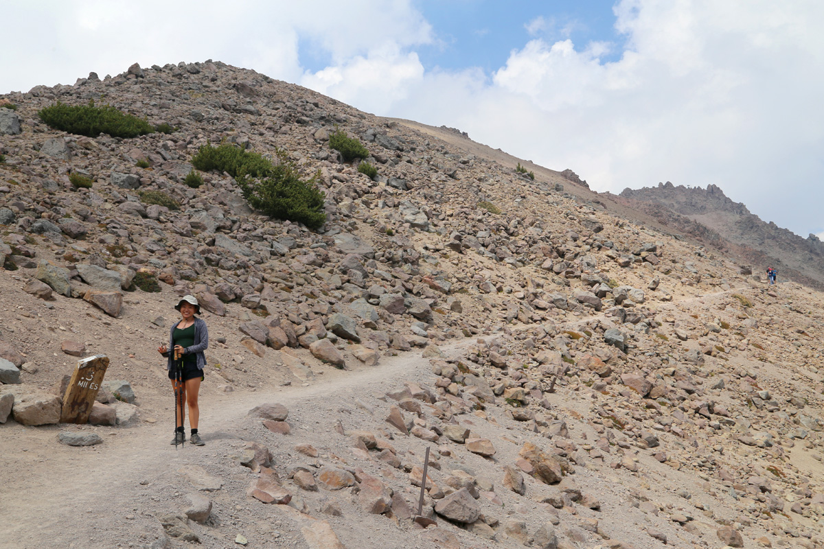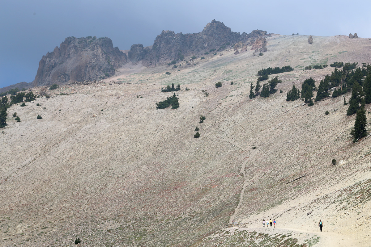 4명중에 1명은 일찌감치 포기하고 내려가시고 3명이 남았는데, 지혜가 그들을 추월해서 먼저 올라가고 있다. 래슨피크의 정상은 저 바위들 너머에 있어서 아직까지는 보이지 않는다.