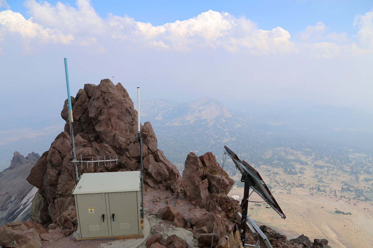 래슨피크에는 따로 정상임을 알리는 표식은 없었고 (못 찾았을 수도), 아래에서부터 보이던 태양광 발전판에 연결된 어떤 관측시설과 안테나만이 눈에 띄었다. 그리고 정상의 바위들이 모두 거칠고 날카로워서 편하게 앉아서 쉴만한 곳도 찾기 어려웠다. (구글맵으로 지도를 보시려면 여기를 클릭)