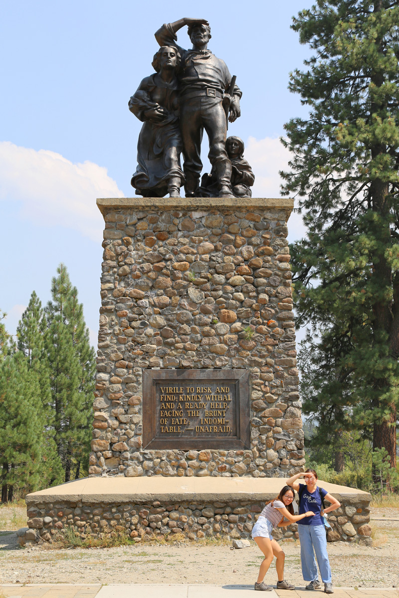 멀리 서쪽을 바라보는 가족의 모습을 조각한 이 동상의 공식적인 이름은 '개척자 기념비(Pioneer Monument)'이다.