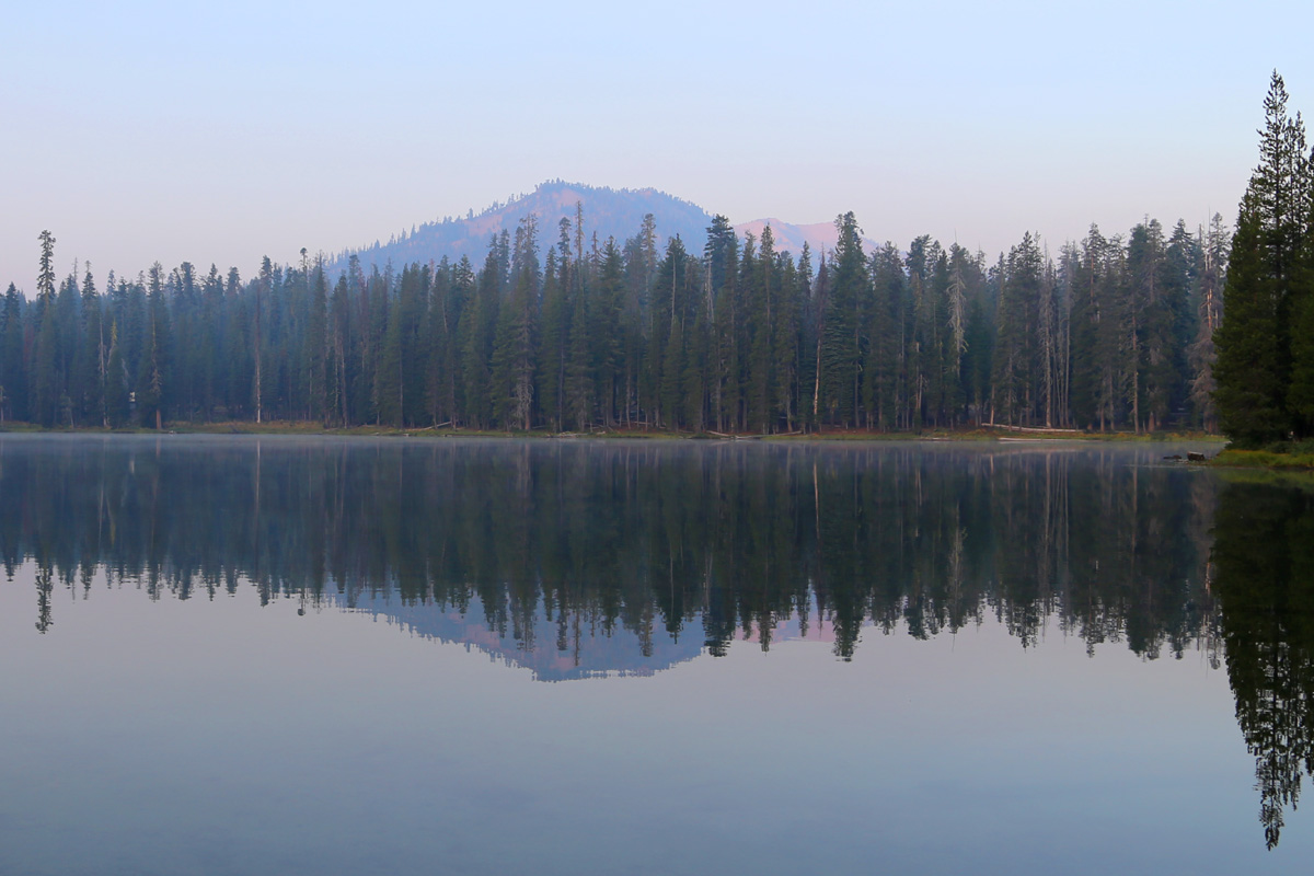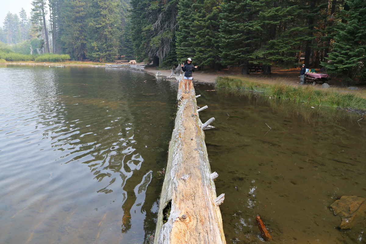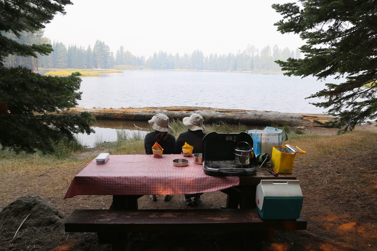 그래서 다시 캠핑장쪽으로 들어가 호숫가 피크닉에리어에 자리를 잡았다. 이 때 쯤에는 산불연기가 짙어져서 래슨피크는 전혀 보이지가 않을 정도였다.