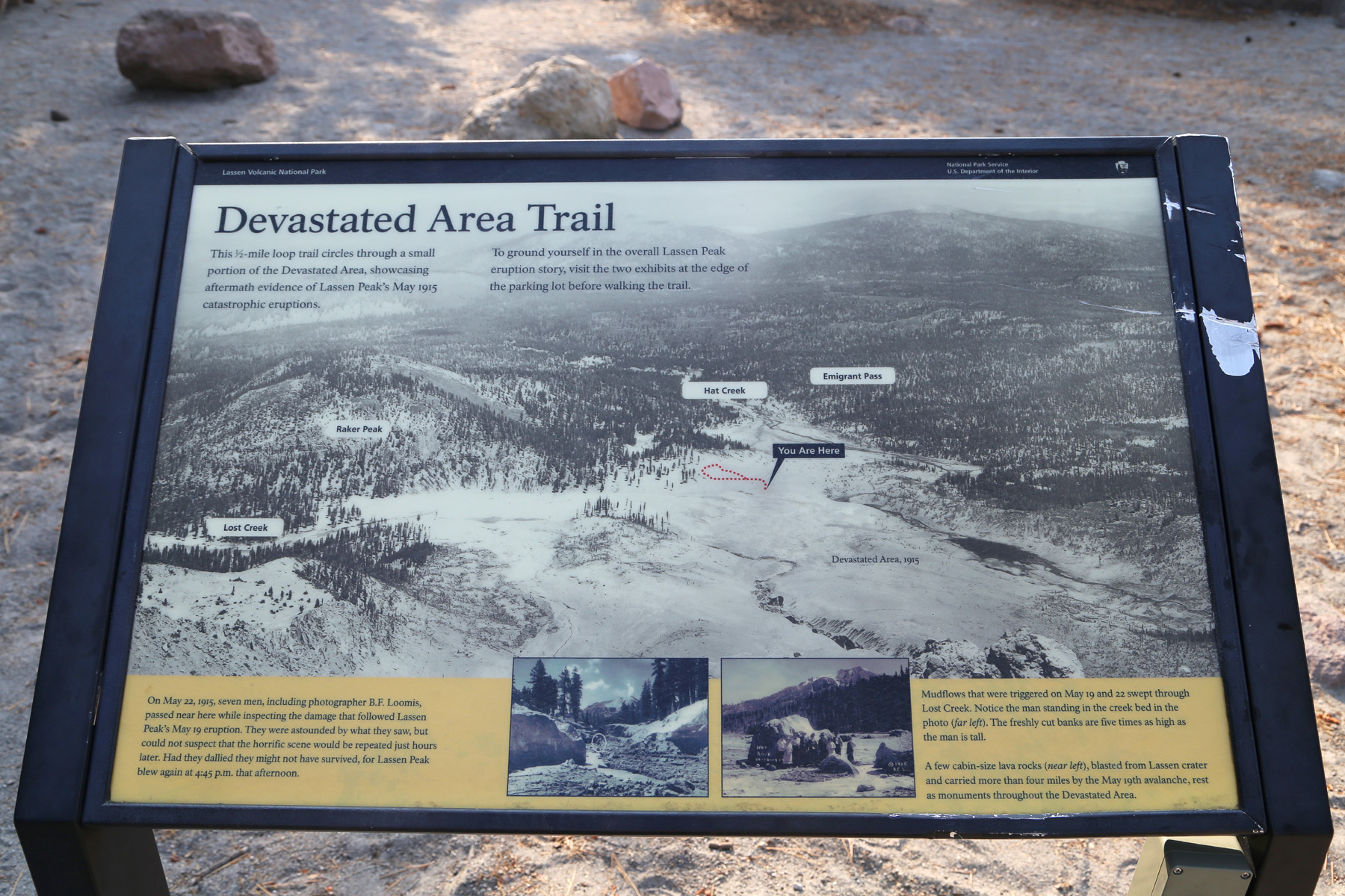 사진사 프랭크 루미스(Frank Loomis)가 1915년 6월 14일에 건판사진기로 찍은 이 장면들은 최초로 사진으로 기록된 화산폭발 장면으로 미국전역의 신문에 실렸고, 다음해 이 곳이 미국 국립공원으로 지정되는데 큰 기여를 했다고 한다.