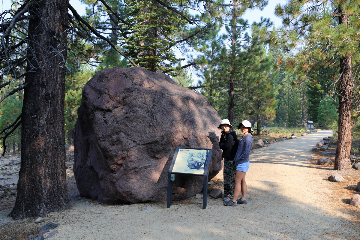 안내판 사진 속의 5개 바위가 실제로 바닥에 '쪼로미' 놓여져 있다.^^ 왼쪽 2개는 27,000년전에 만들어졌고, 오른쪽 3개는 1915년 화산폭발때 만들어져서 캘리포니아에서 가장 젊은 바위들이라고 한다.