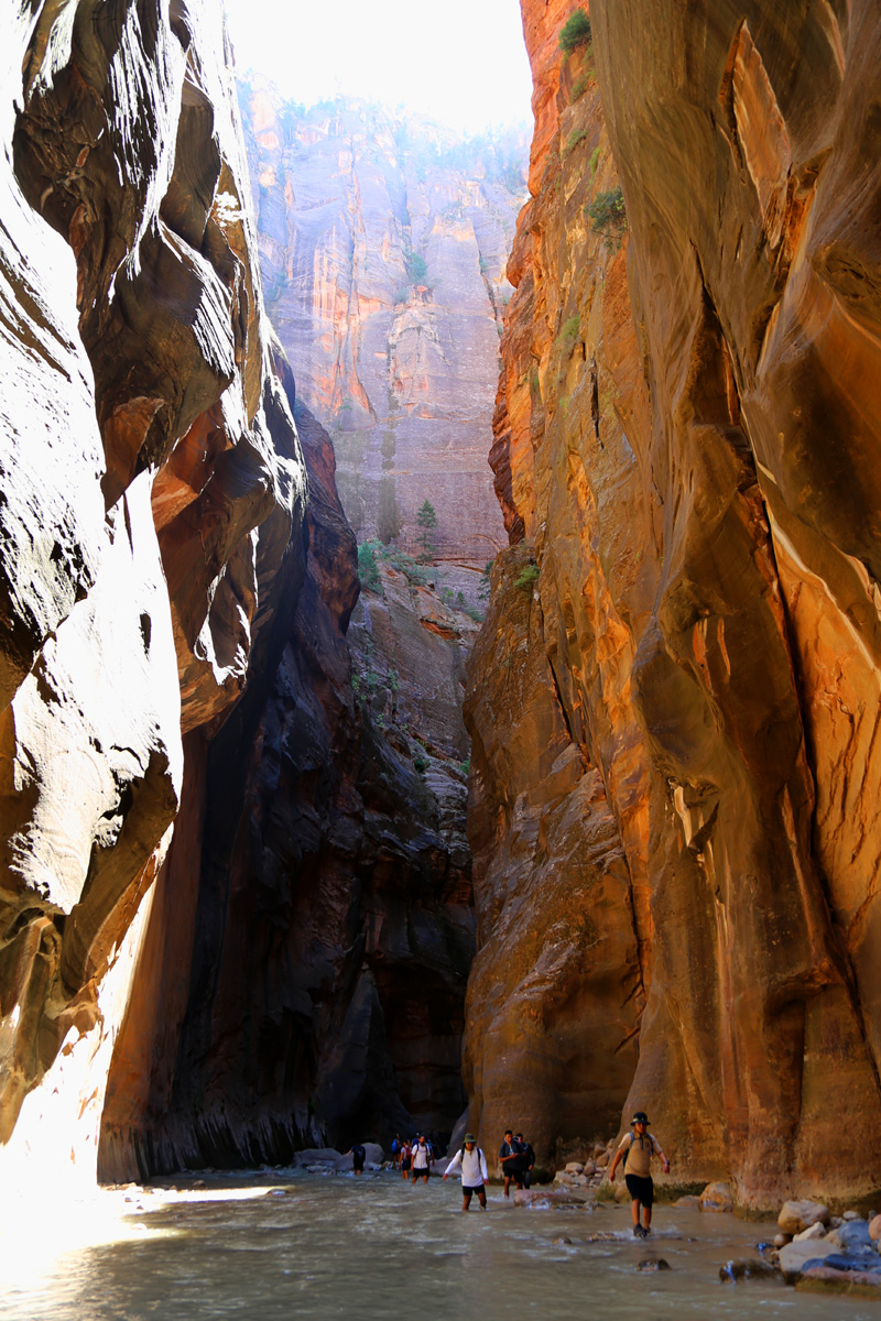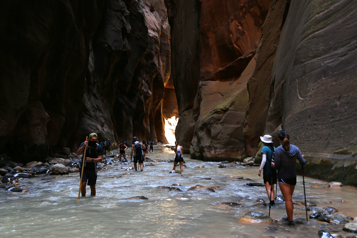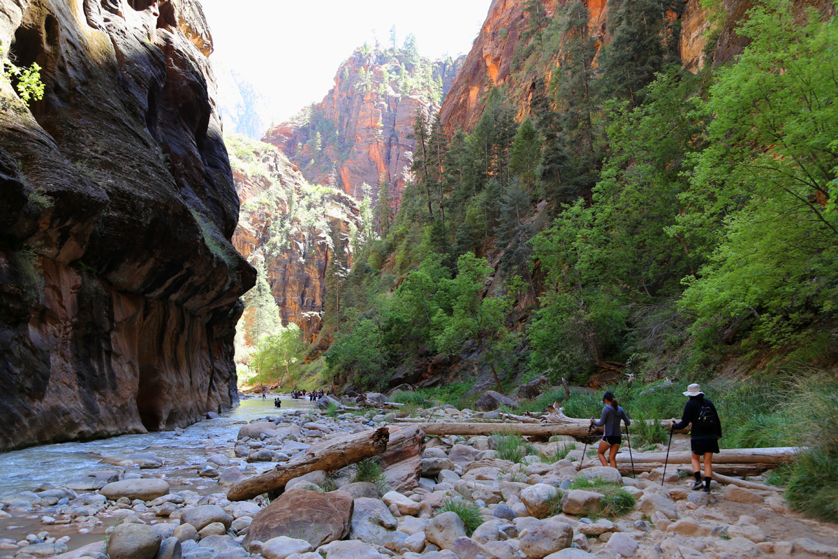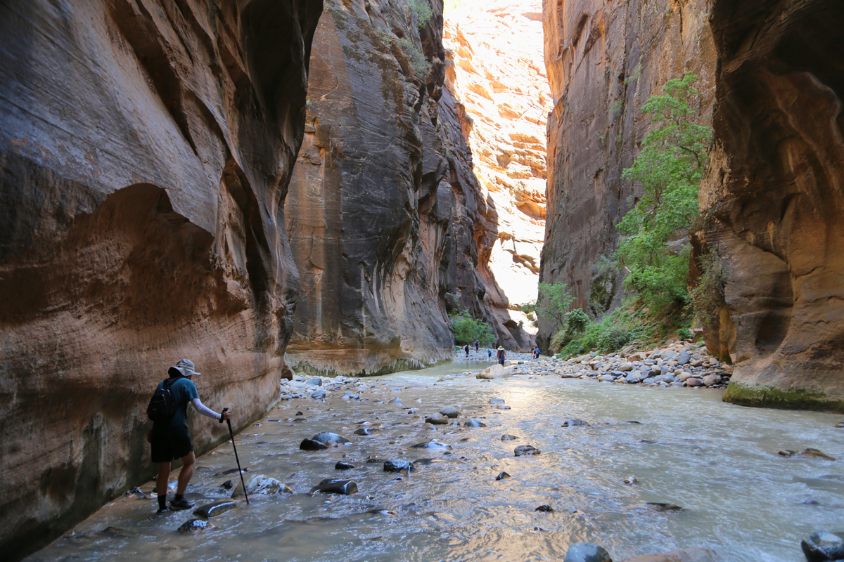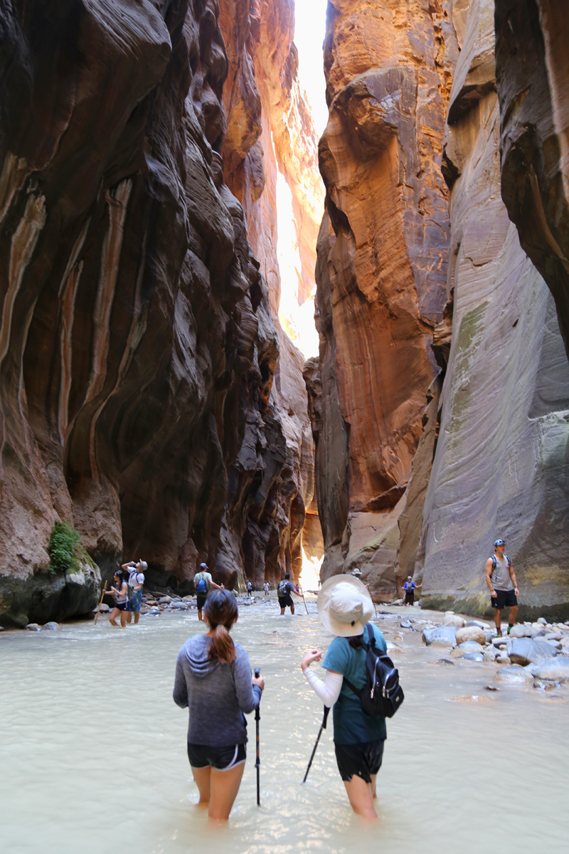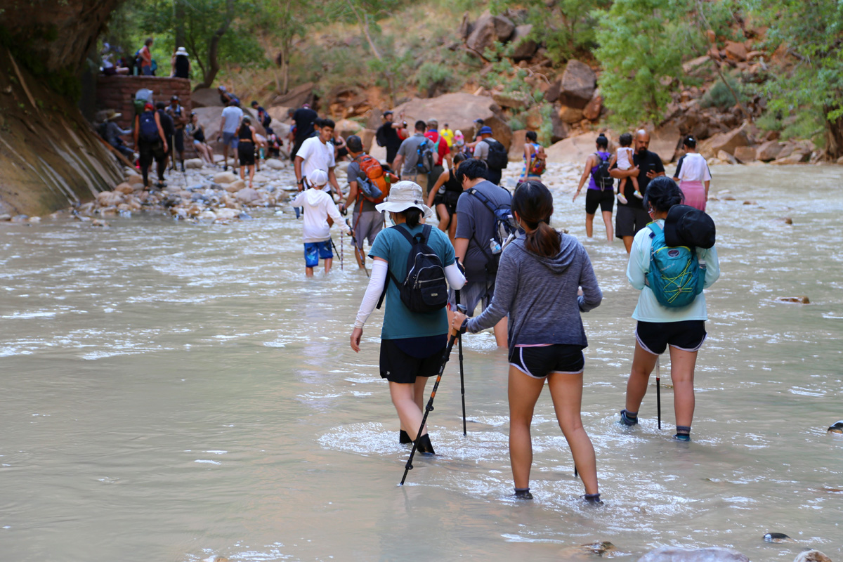 이제 이 곳만 건너면 건너편에 보이는 내로우트레일(Narrows Trail)의 시작점으로 더 이상 물에 발을 담그지 않아도 된다.