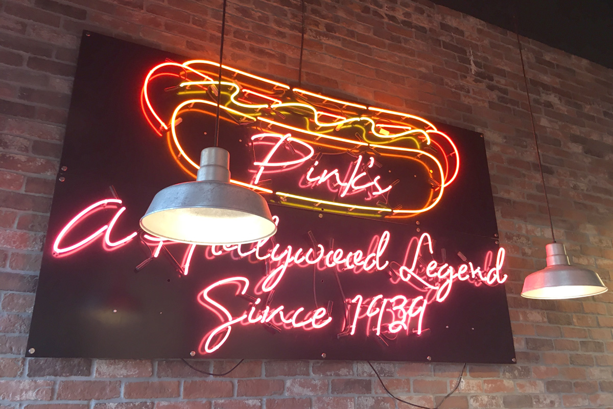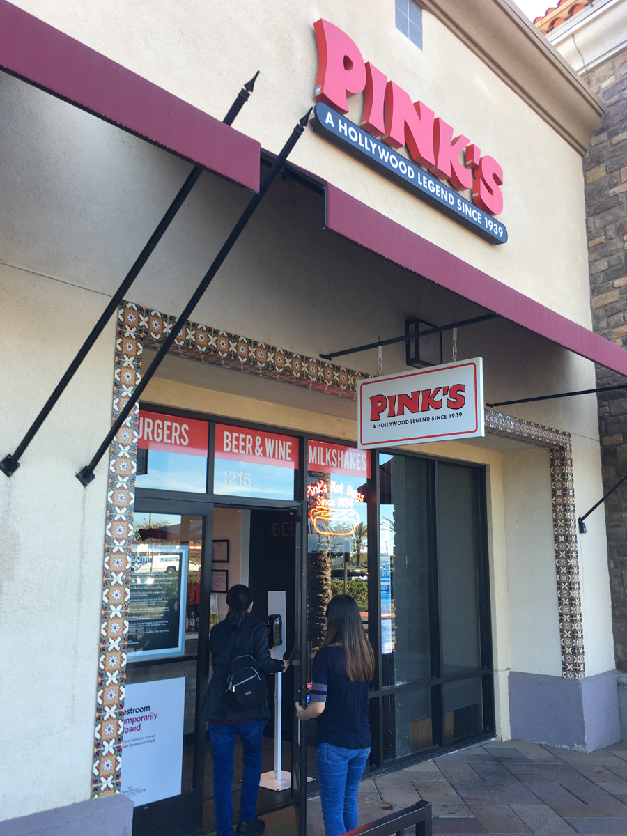 로스앤젤레스(Los Angeles)를 대표하는 유명한 맛집중의 하나라고 할 수 있는 핑크핫도그(Pink's Hot Dogs)는 2009년에 라스베가스 스트립을 시작으로 현재 15곳이나 분점이 있는데, 여기 까마리요 아울렛에는 2018년에 생겼다고 한다. (3개로 나누어진 아울렛 구역들 중에서 제일 서쪽의 The Promenade 중앙에 있음)