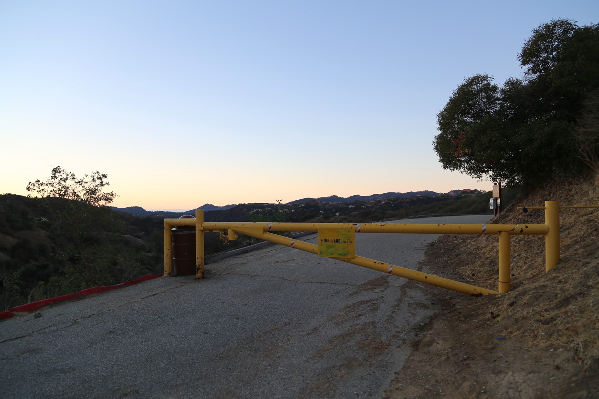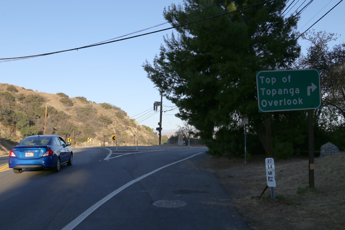 Topanga Canyon Blvd를 건너서 주차장을 한 번 돌아보고 찍어주고는, 자동차 도로를 따라서 전망대까지 걸어갔다.