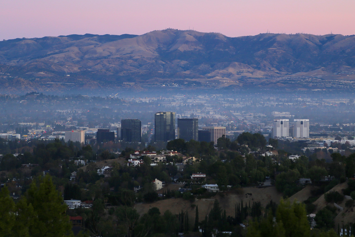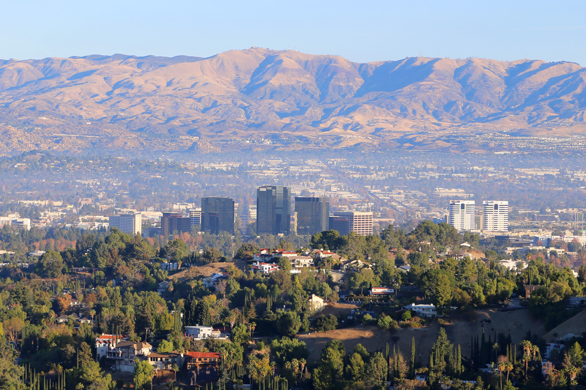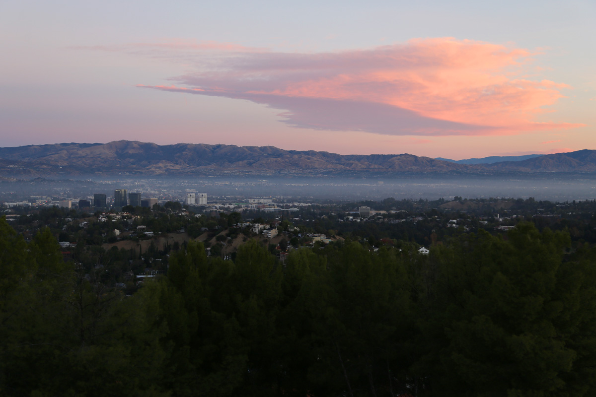 여기서는 북쪽으로 샌퍼난도밸리(San Fernando Valley) 지역이 잘 내려다 보이는데, 가장 가까이 보이는 마을은 밸리에서도 인기있는 거주지인 우드랜드힐스(Woodland Hills)이다.