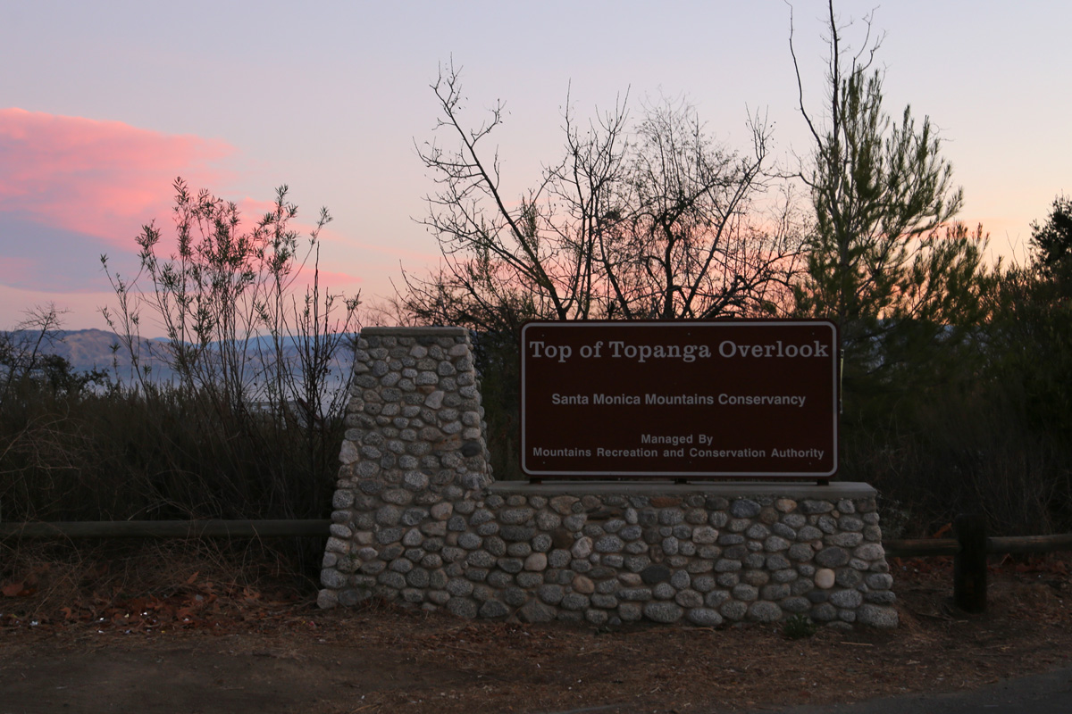 연구결과로 낙점된 이 곳은 집에서 자동차로 15분 거리인 탑오브토팡가 전망대(Top of Topanga Overlook)로, 산타모니카 산맥을 넘어가는 27번 도로인 Topanga Canyon Blvd에서는 가장 높은 곳이다. (구글맵으로 위치를 보시려면 클릭)
