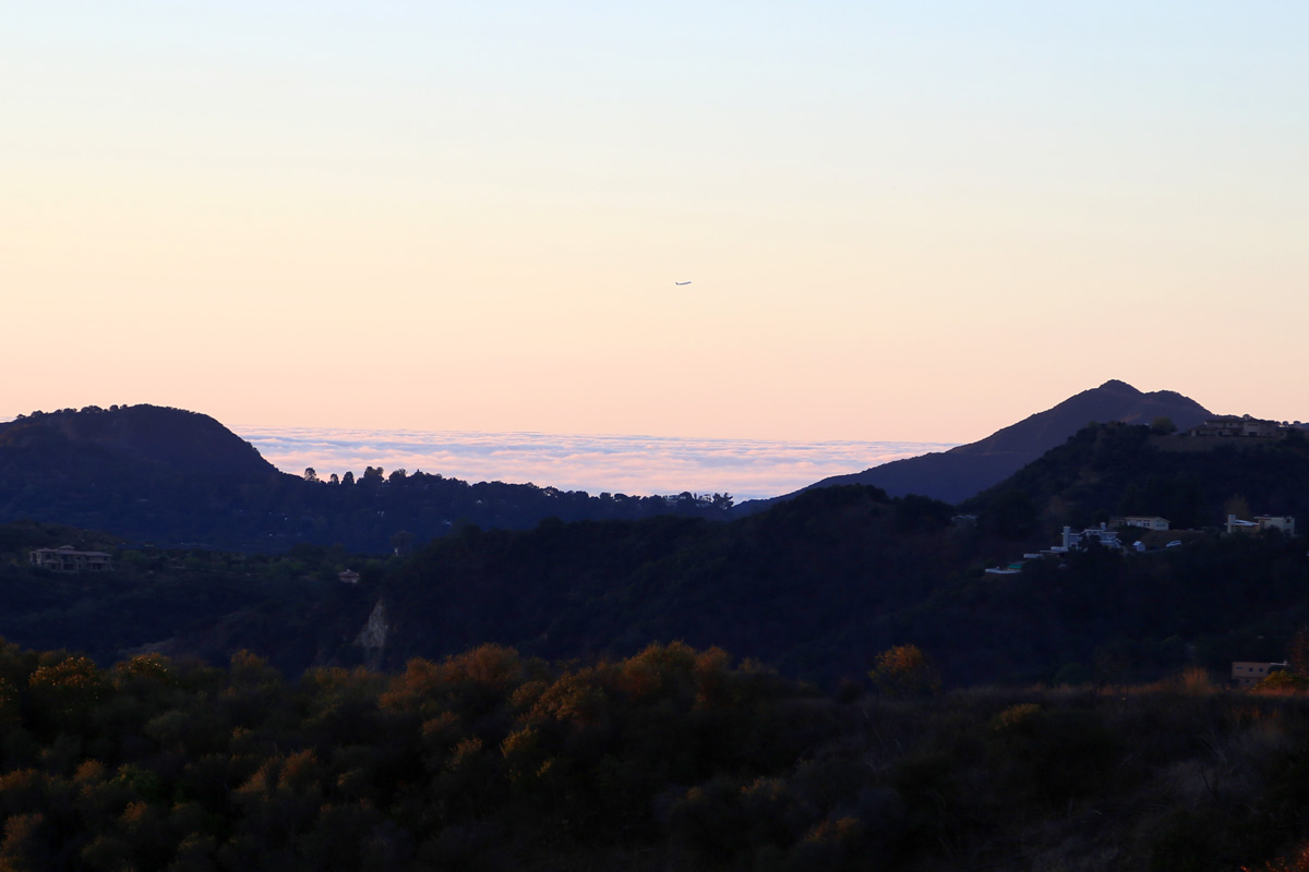 멀리 남쪽으로는 아직 바다에서 밀려온 구름이 낮게 깔려있는 운해의 위로, LA 국제공항에서 막 이륙한 여객기 한 대가 구름을 뚫고 올라와서 고도를 높이고 있었다.