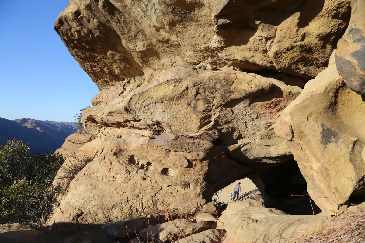 구멍을 관통해서 나온 후에 아래쪽 등산로를 그 사이로 내려다보고 찍었는데, 마침 다른 하이커가 물병을 들고 지나가고 계신다. 가족과 함께 짧은 하이킹을 원하시는 분이라면 이 동굴까지 왕복 1시간 정도이므로 추천을 해드린다.