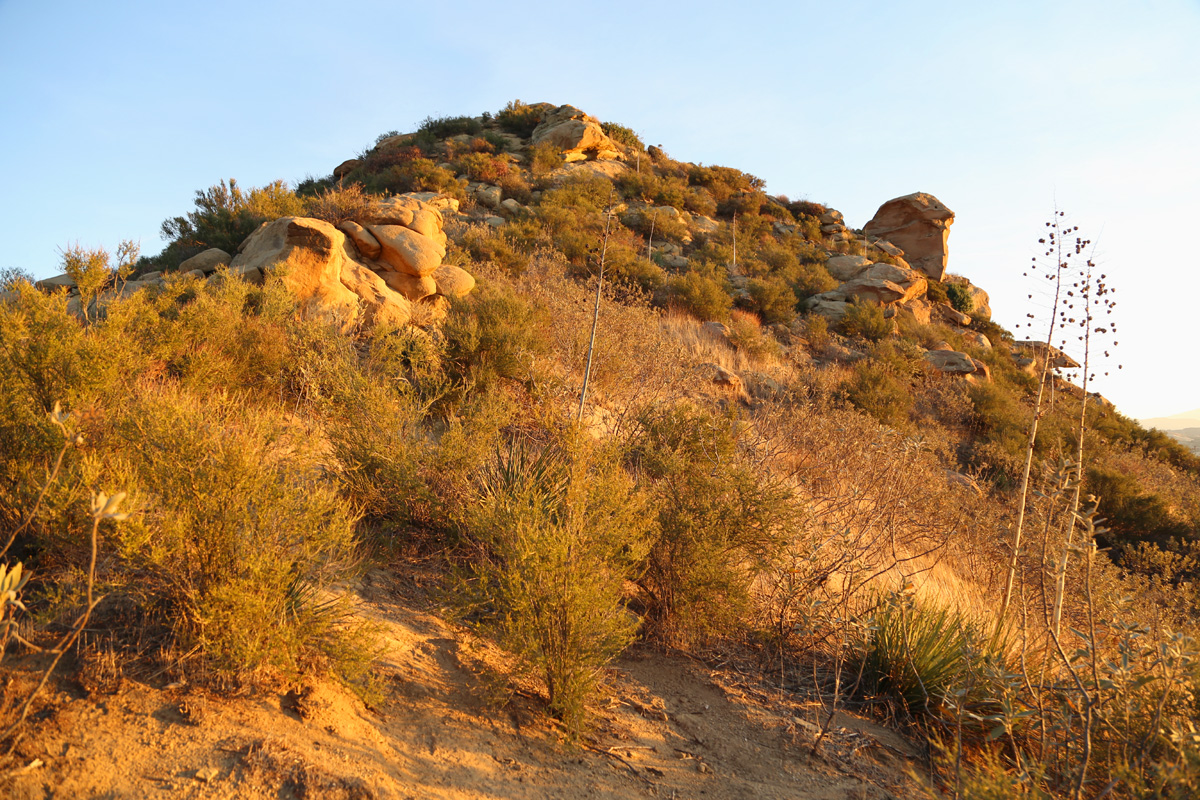 붉은 아침 햇살이 바위투성이 등산로를 비추는 이 곳은 밸리 북서쪽에 위치한 록키피크 공원(Rocky Peak Park)이다.