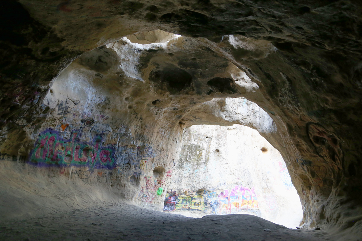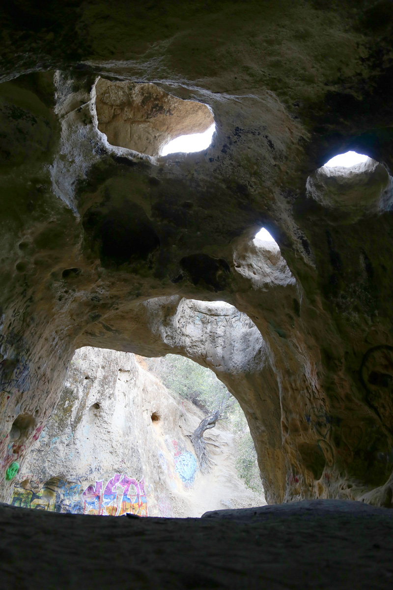 동굴의 벽에는 특히 이런 해골이나 외계인(?)의 모양을 스프레이로 그려놓은 것이 많았다. 단순히 낙서만 한 것이 아니라 무른 바위를 깊숙히 깍아서 그림이나 글씨를 써놓기도 해서, 사실상 이 특이한 동굴의 벽을 청소하거나 복원하는 것은 포기한 느낌이 들어서 좀 씁슬했다.