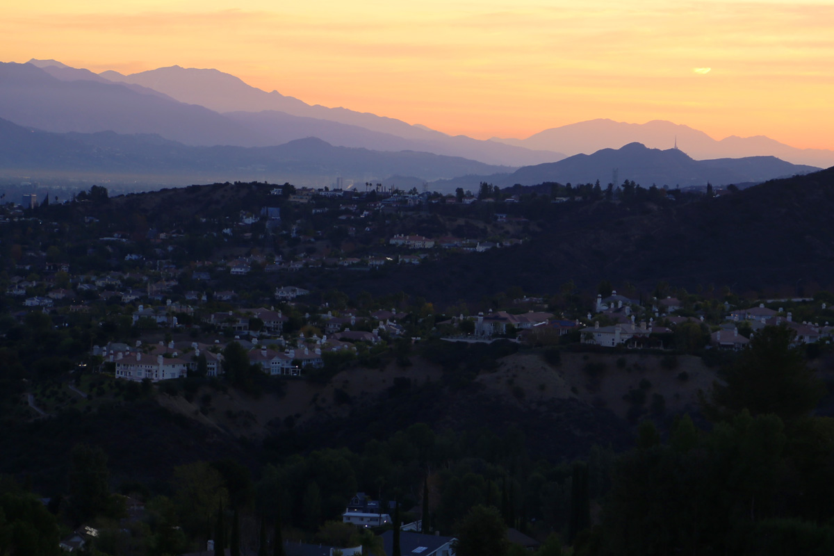 멀홀랜드 길을 따라서 조금 걸으니 그린브라이어 드라이브(Greenbriar Dr)와 만나는 넓은 공터에 LADWP의 시설이 나오고, 조금 더 걸으니까 마침내 해가 언덕 위로 떠올랐다.