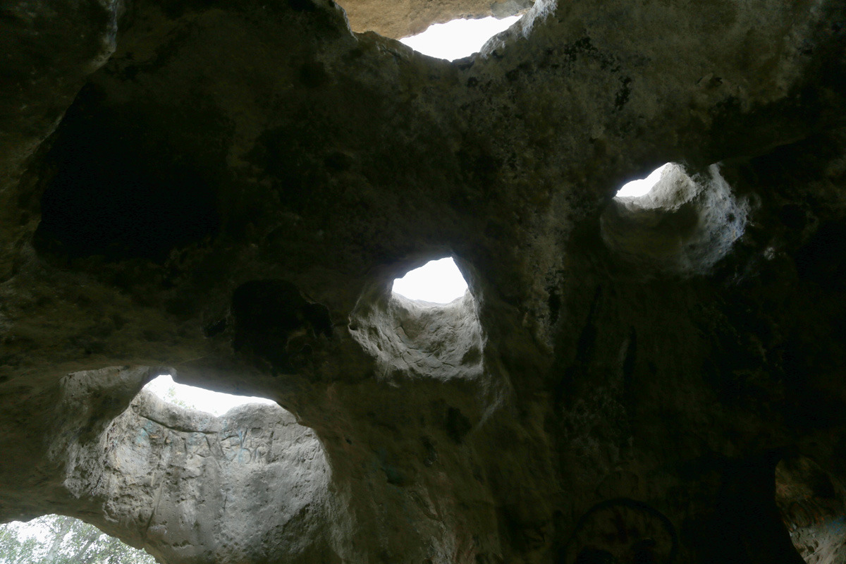 입구와 함께 천정의 구멍들을 찍어보면, 입을 벌리고 있는 괴물이나 해골처럼 보여서인지,