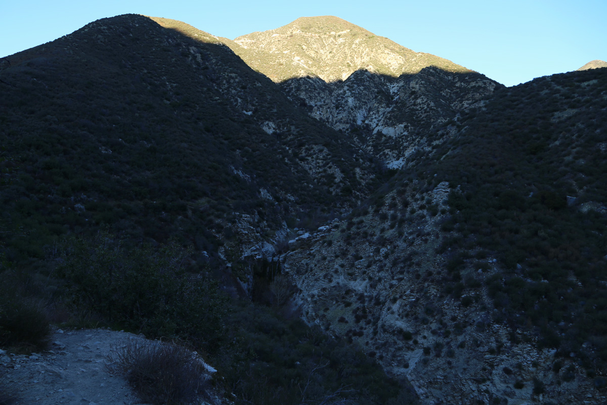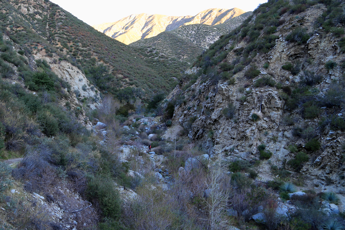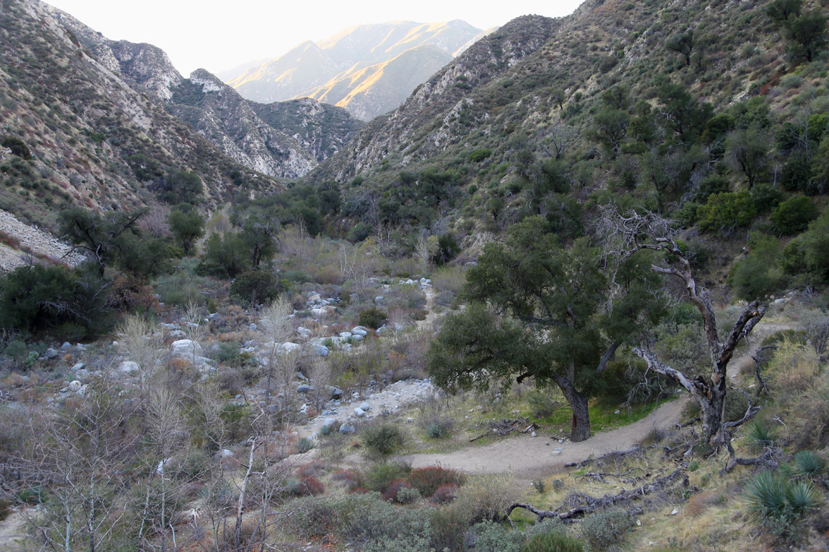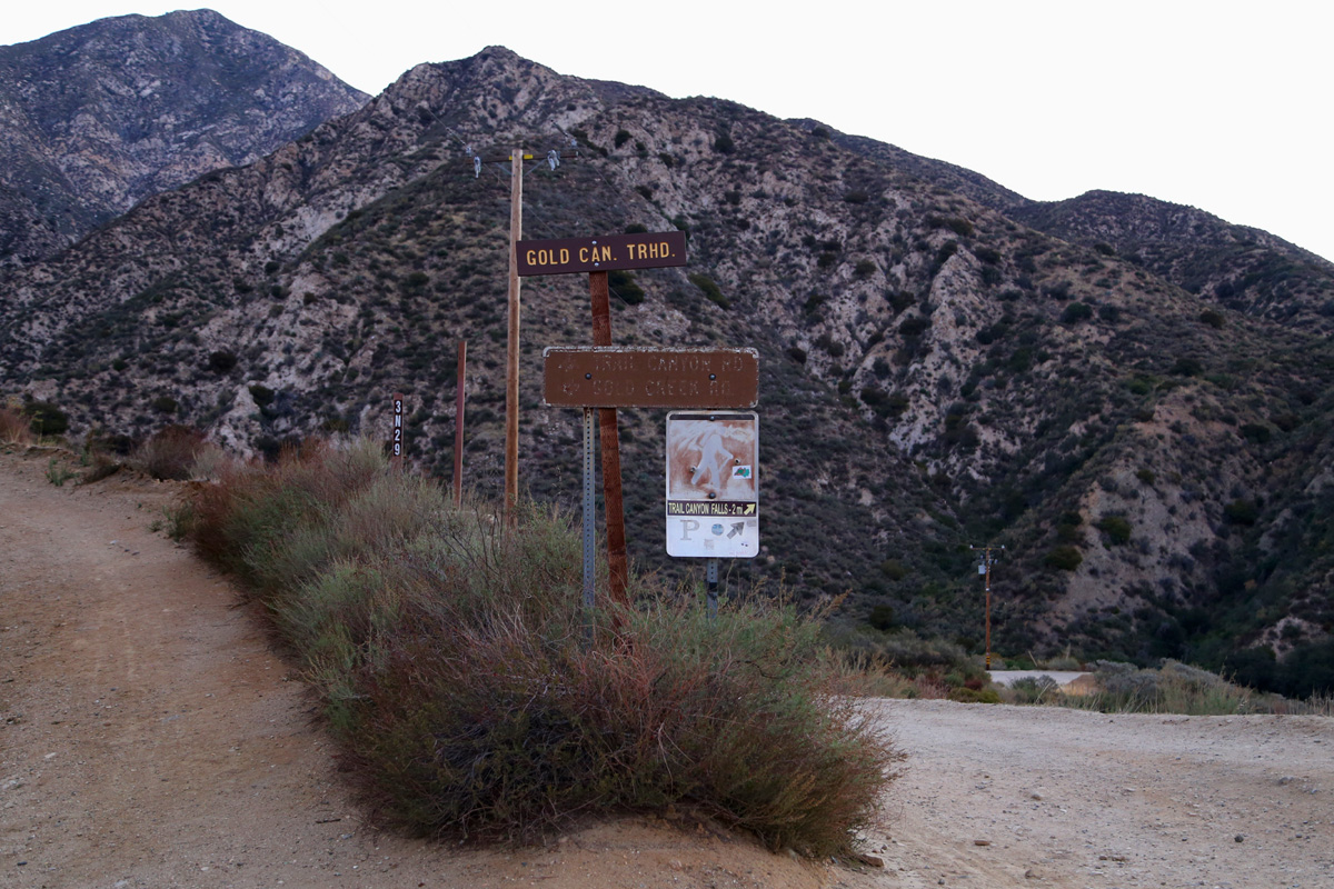 비포장도로를 S자로 조금 올라가면 왼쪽으로는 골드캐년(Gold Canyon)이고, 오른쪽으로 2마일을 가면 트레일캐년폴(Trail Canyon Falls)이라는 표지판이 세워져 있다. 오래간만에 LA 북쪽의 앤젤레스 국유림(Angeles National Forest)으로 하이킹을 왔는데, 역시 뒤로 보이는 샌가브리엘 산맥의 높은 산세는 집주변과는 확연히 달랐다.