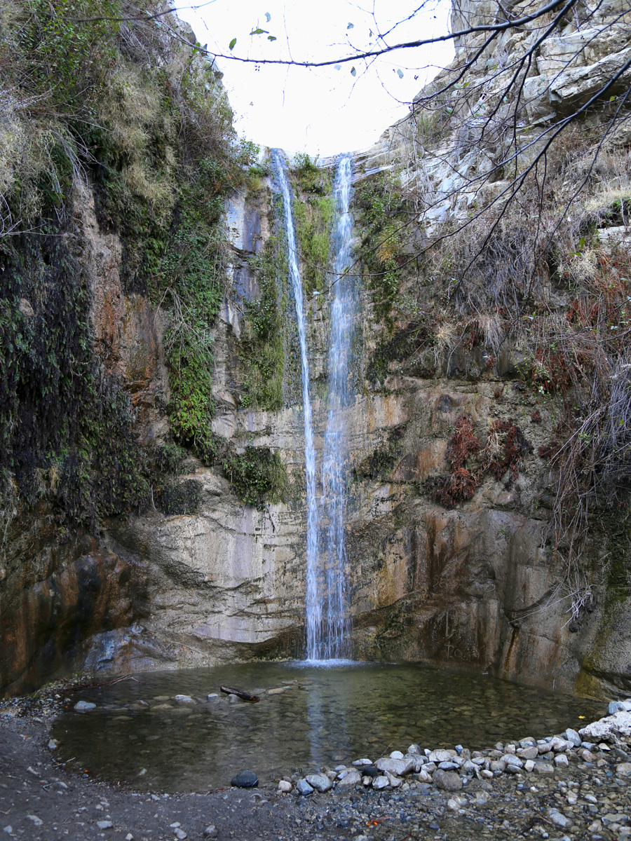 물이 낙하하는 높이 30피트(10 m)에 각도는 거의 수직, 특히 아래쪽에 맑고 깨끗한 얕은 물웅덩이에 폭포를 감싼 반원형의 절벽까지! LA에서 가장 아름다운 폭포라는 말이 거짓이 아니었다. 특히 이 모습은 위기주부가 지금까지 본 폭포중에서 가장 기억에 남는 하와이 마우이 섬의 와이모쿠 폭포(Waimoku Falls)의 축소판 같았다. (2012년 여행기를 보시려면 클릭)