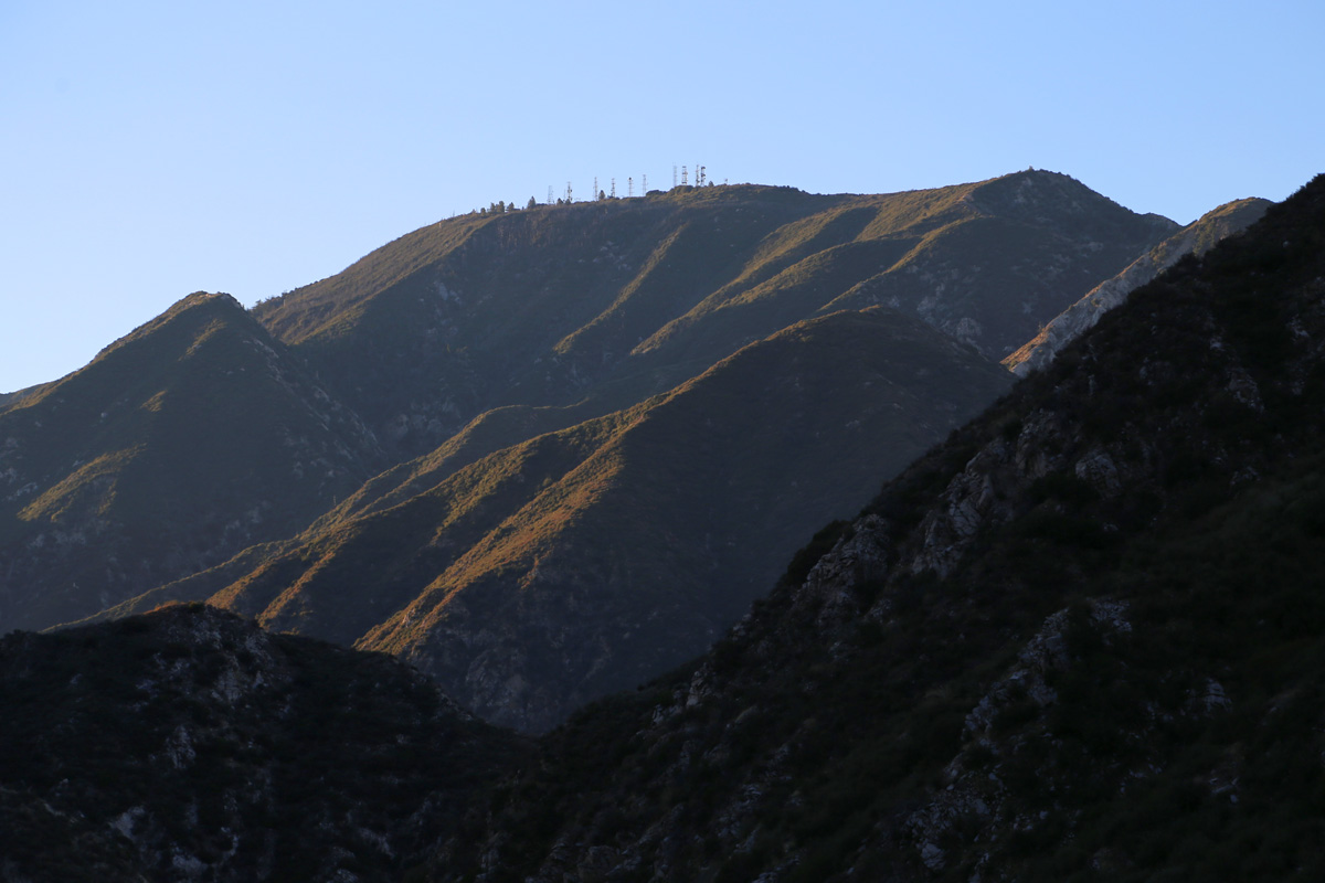 많은 안테나들이 세워져 있는 'LA시에서 가장 높은 산'으로 잘 알려져있는 마운트루켄스(Mount Lukens가 보인다. 2년전에 저 산 남쪽의 라크레센타에서 정상까지 등산을 한 적이 있는데, 아래를 클릭하시면 등산기와 함께 왜 저기가 LA에서 가장 높은 곳인지 이유를 보실 수 있다.