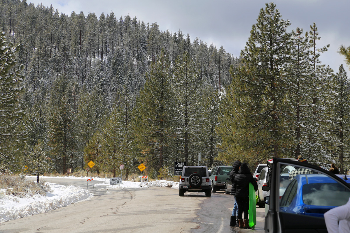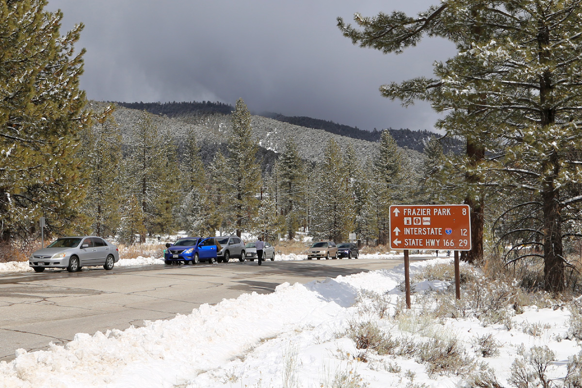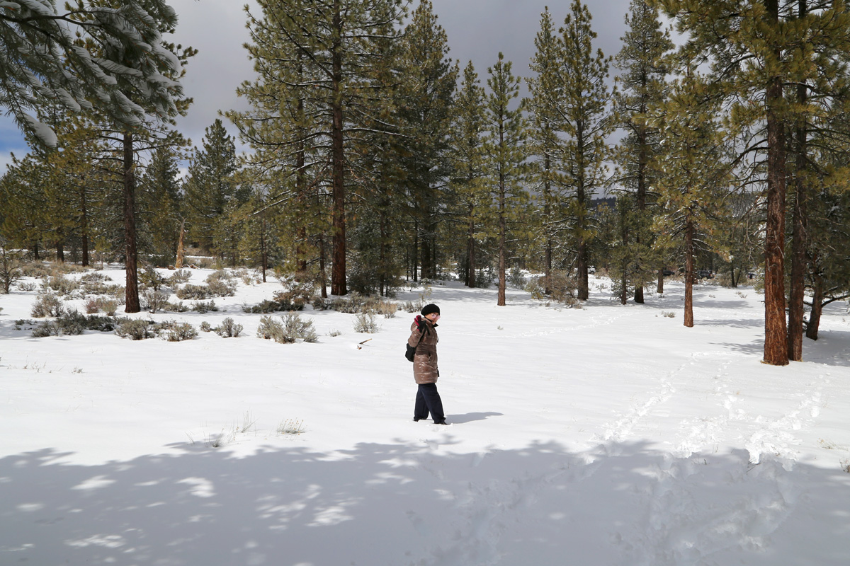 저 언덕 너머 어딘가에 정상고도가 해발 8,847피트(2,697 m)나 되는 피노스 산(Mount Pinos)이 있을텐데, 주차장까지 가는 도로가 열리면 아내와 함께 다시 한 번 더 와야겠다. 아마 그 때도 정상쪽에는 충분히 눈썰매를 탈 수 있을거다.