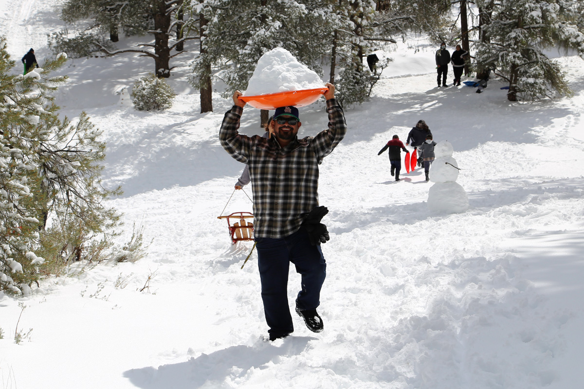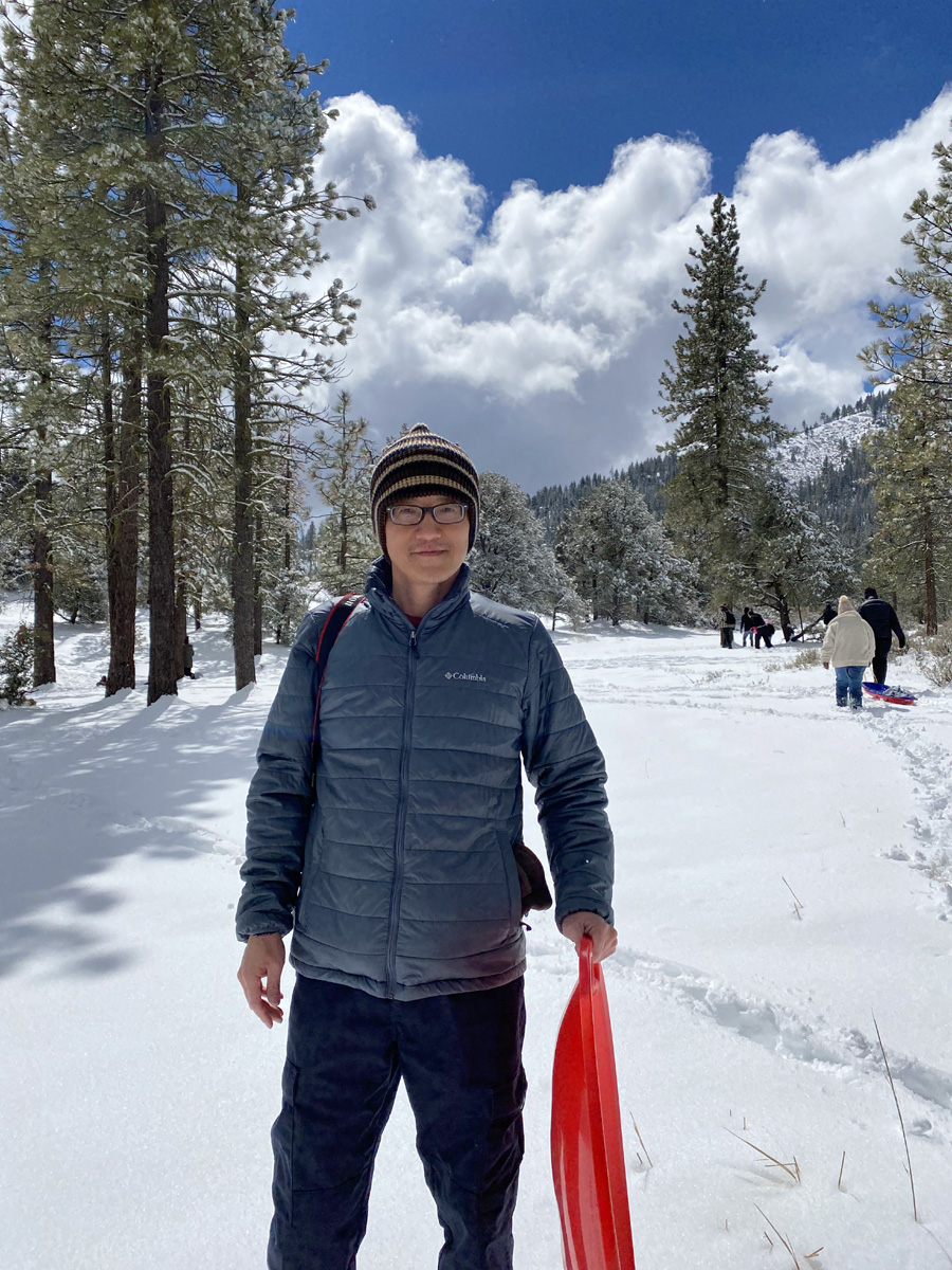이럴줄 미리 알고, 우리도 작년에 요세미티 국립공원에서 탔던 빨간 눈썰매를 미리 가지고 왔다. (여행기를 보려면 클릭)