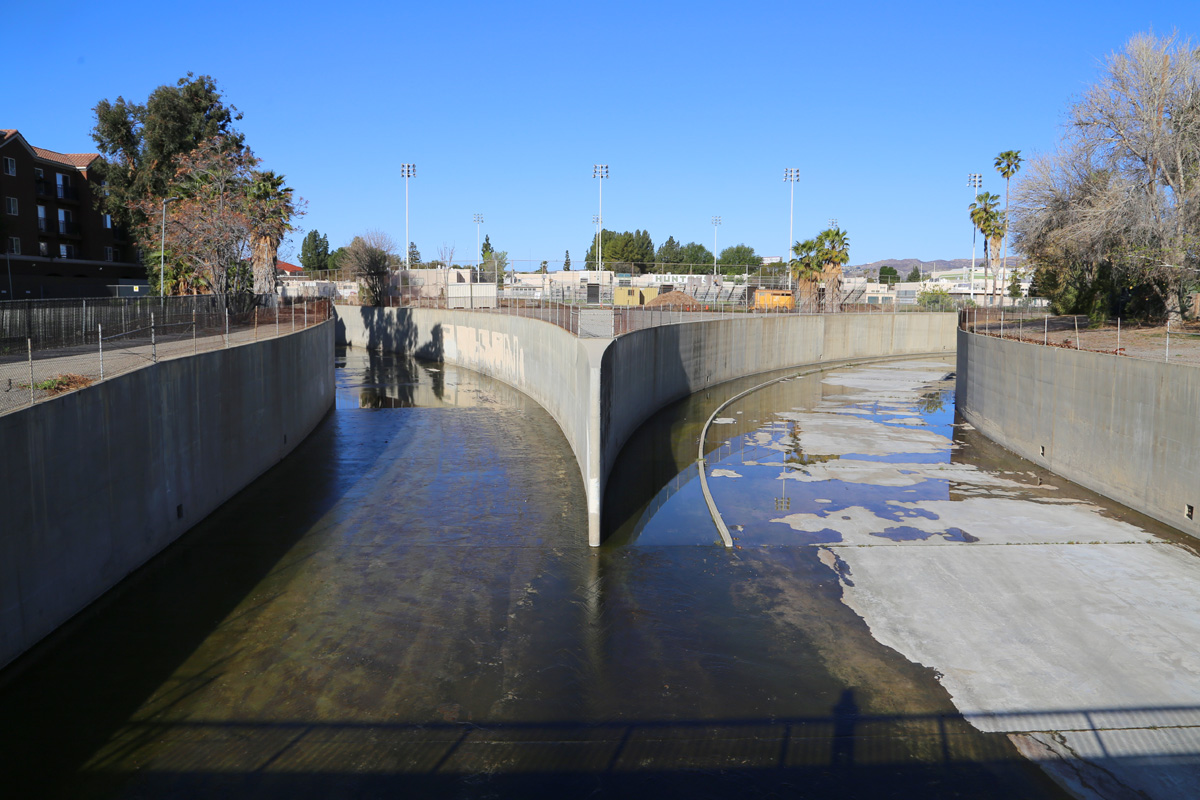 합류점의 반대편 동쪽으로 흘러가는 LA강으로, 이후 80 km 전구간이 거의 이런 삭막한 모습이다... 2000년대 들어서 강의 생태계를 되살리자는 움직임이 시작되었고, 2006년에는 LA 시장이 서울을 방문해 청계천 복원사업을 답사하고 가기도 했다. 그러나 그리피스 공원 부근 등 아주 일부만 바닥의 콘크리트가 제거되었을 뿐, 홍수방지 등의 이유로 전체적인 복원작업은 절대로 불가능하다고 한다.