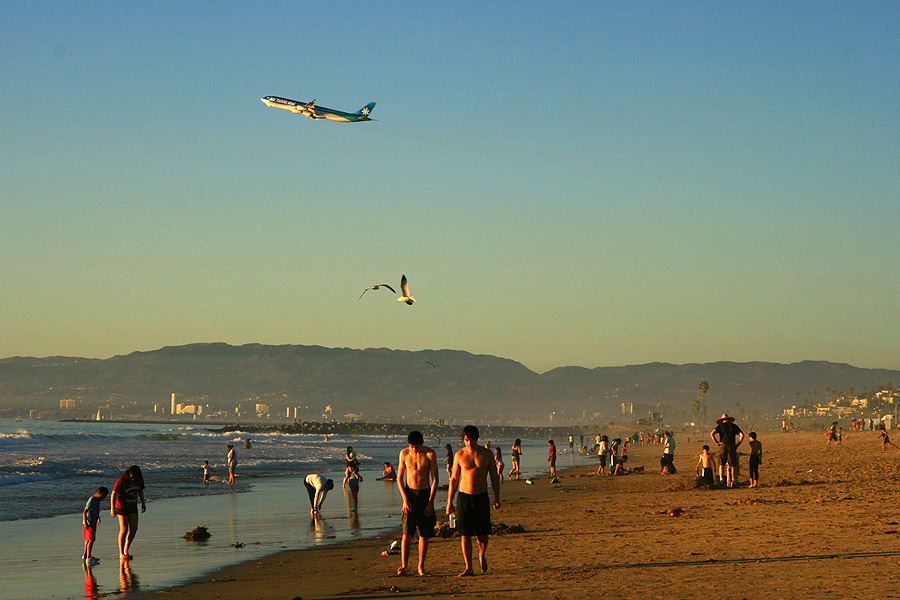 2011년초 겨울에 방문했던 LA국제공항의 활주로 끝에 있는 바닷가인 독웨일러 주립해안의... 한여름같은 모습이다. 사진에도 방금 이륙한 비행기가 찍혔지만, 보통 5~10분마다 거대한 여객기가 한 대씩 굉음을 내며 이륙을 하기 때문에 대화가 끊어지는 단점이 있는 바닷가이다.