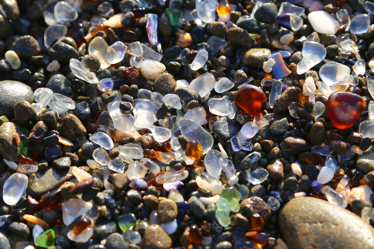 캘리포니아 북부해안 자동차여행의 첫번째 목적지로 맥케리셔 주립공원의 제일 남쪽끝에 있는 '유리해안' 글래스비치(Glass Beach)에 들렀었다. 바닷가 쓰레기장의 유리들이 이렇게 예쁘게 남아서 관광지가 된 곳인데, 유리가 점점 줄어들고 있다고 하므로 절대 주머니에 넣어 가지고 가면 안된다.