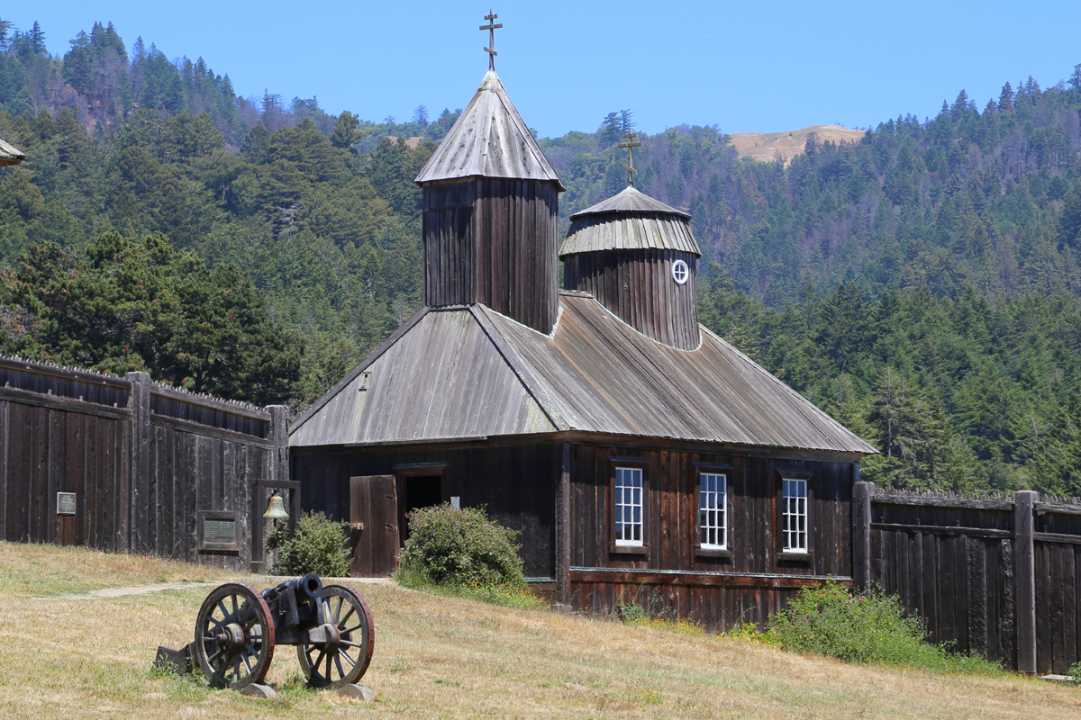 북부 캘리포니아 바닷가에 있는 러시아 사람들이 건설한 요새가 유적지로 지정된 포트로스 주립역사공원의 러시아정교회 예배당의 모습이다.
