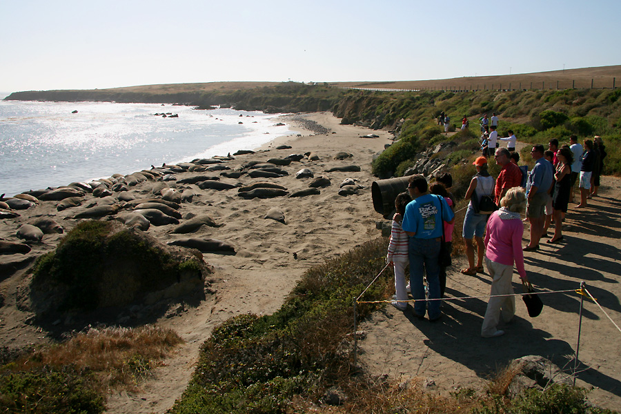 앞서 소개했던 허스트캐슬과는 별도로, 그 부근의 바닷가가 허스트샌시메온(Hearst San Simeon) 주립공원으로 지정되어 있다. 몇 개의 구역으로 나누어져 있는 바닷가들 중에서 가장 유명한 곳은 멀리 보이는 등대가 있는 포인트 피에드라블랑카(Point Piedras Blancas)와 여기 커다란 코끼리물범(elephant seal)들을 볼 수 있는 곳이다.
