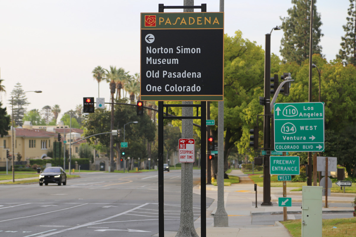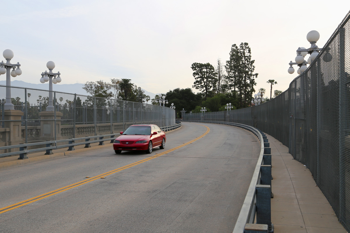 빨간 장미를 문양으로 사용하는 파사데나(Pasadena) 시의 안내판이 세워진 사거리를 건너서, 오른쪽 콜로라도블러바드(Colorado Blvd) 방향으로 걸어간다. (다리가 만들어질 당시에는 길의 이름이 Colorado Street 였는데, 후에 Colorado Boulevard로 바뀌었음)