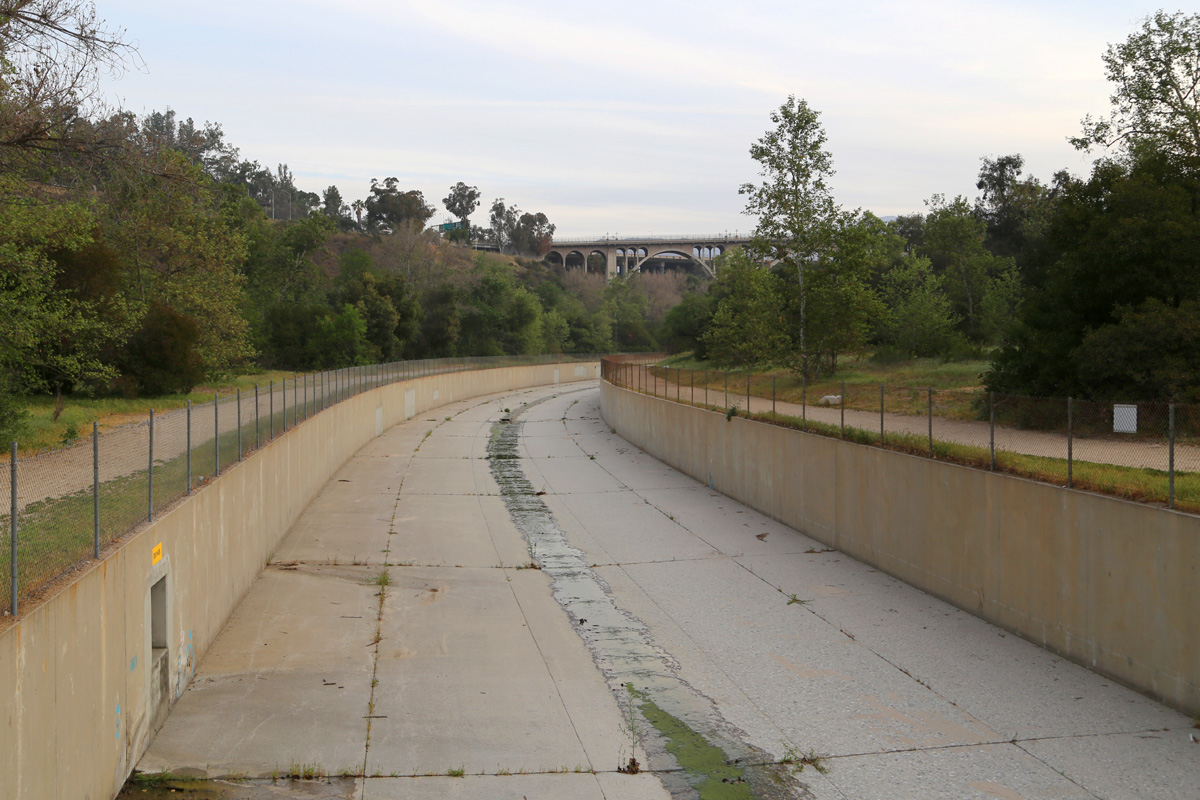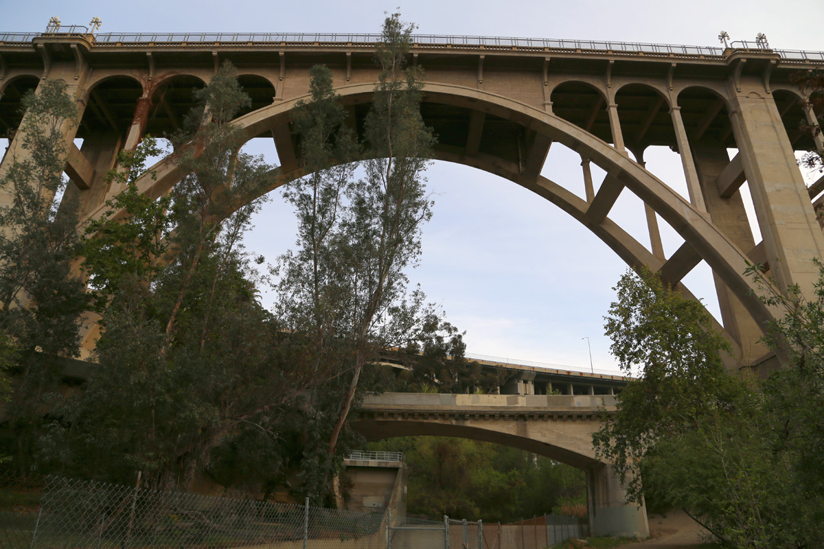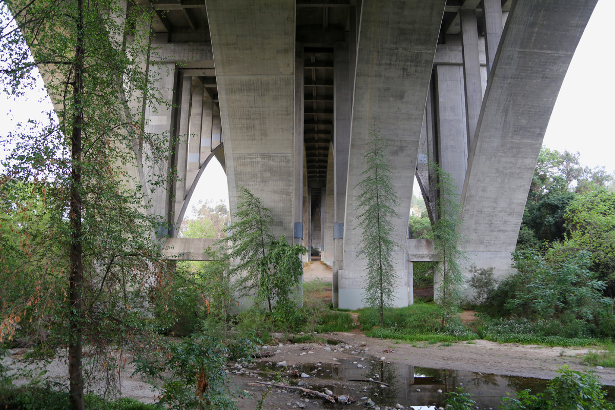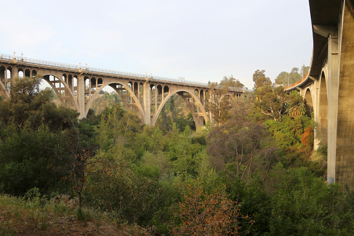 스페인어 Arroyo Seco는 '마른 물줄기(dry stream)'라는 뜻이고, 지난 번에 소개한 로스앤젤레스 강(Los Angeles River)의 지류로 다운타운 북쪽에서 LA강과 합류한다. 하지만, 이 글의 주인공은 콘크리트 물길이 아니라, 멀리 보이는 이 개울을 높이 건너는 저 콘크리트 다리이다.