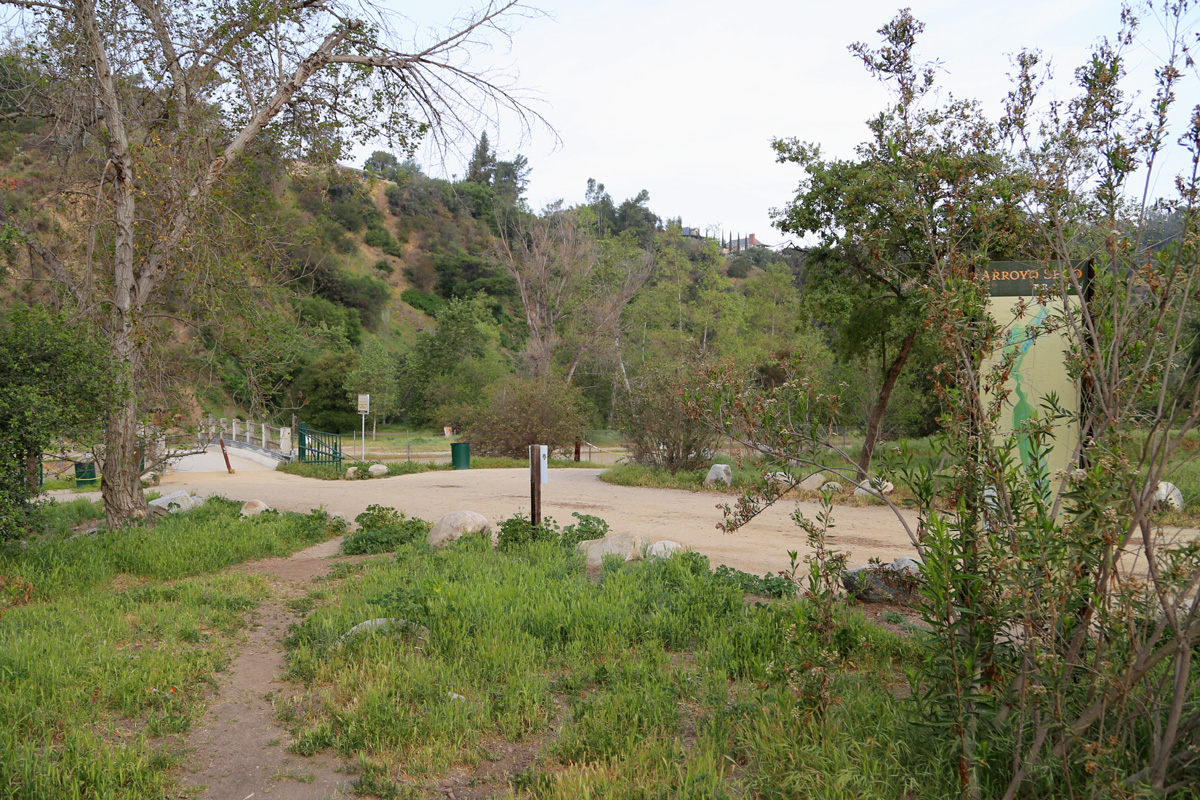 4개의 아치가 떠받히고 있는 이 다리는 파사데나를 동쪽 끝으로 하는 134번 고속도로로, 지금 머리 위 도로의 폭은 진출입로를 포함해서 왕복 14차선이나 된다! 이로서 굴다리 아래 개울가 산책은 10분만에 끝나고, 자동차 도로를 따라서 언덕을 걸어 올라간다. (여기를 클릭하면 트레일 경로를 보실 수 있음)