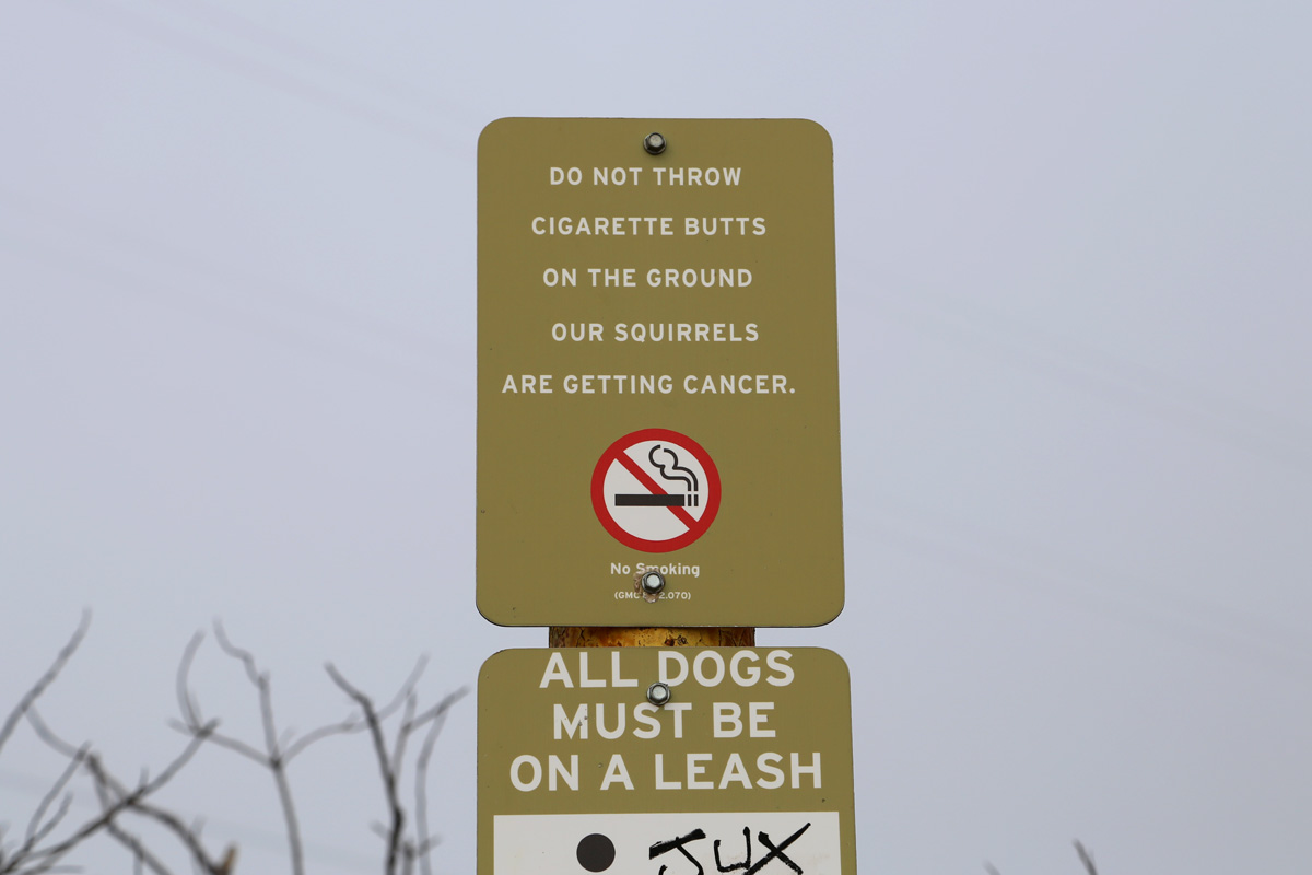 다음 삼거리에 또 세워져 있는 흡연금지 경고문인데, 이 정도의 문구는 애교로 봐줄 수 있을 것 같다. 산맥 위쪽은 글렌데일 시에서 관리하는 것 같은데, 누구의 아이디어로 어느 선까지 결제를 받아서 이런 문구들을 공공장소 안내판에 넣기로 했는지 모르지만, 산에서 담배 피는 사람들을 정말 싫어하는 분이 글렌데일에 계신가 보다.