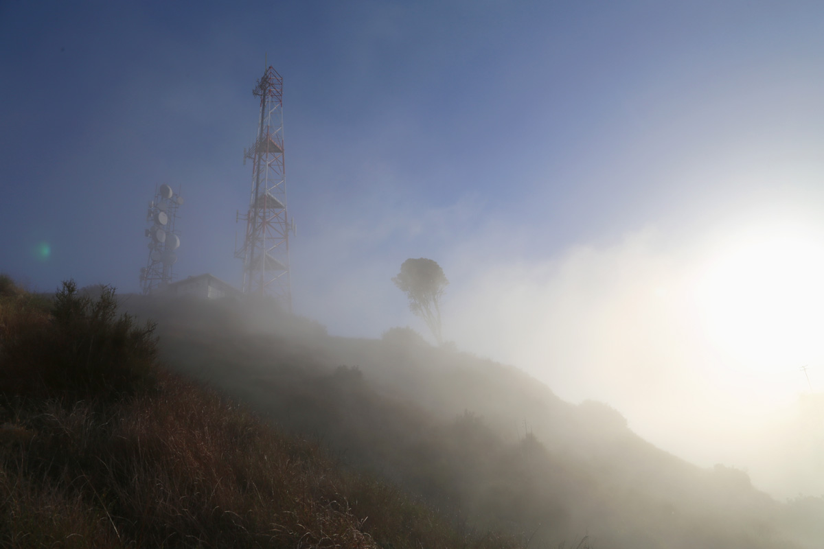 구름인지 안개인지를 뚫고 그렇게 1시간 정도를 힘들게 올라가서, 이렇게 높은 철탑과 안테나 등이 세워진 언덕이 바로 눈 앞에 보이면 일단 능선을 따라 이어진 바이탈링크 트레일의 오르막은 끝난 것이다.