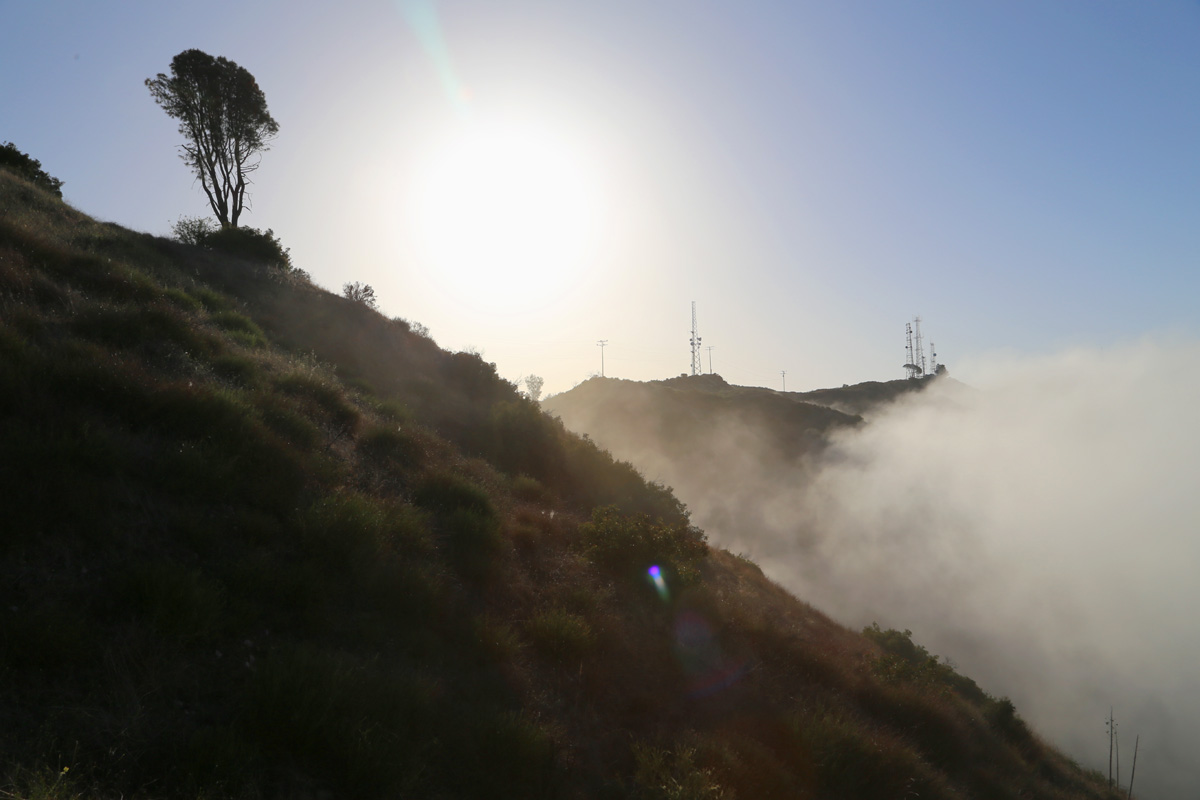 봉우리마다 철탑이 세워져 있어서 약간은 미안한 느낌이 드는 버두고 산맥(Verdugo Mountains)의 주능선이 파란 하늘과 햇살 아래로 보인다. 이 때만 해도 이 산맥의 제일 높은 봉우리인 목적지에 도착을 했을 때는 발아래로 멋진 풍경이나 최소한 운해가 깔린 모습은 볼 수 있을거라 기대했었다.