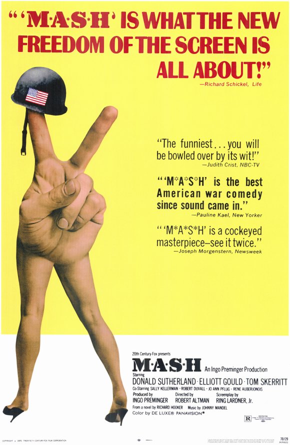 드라마의 시초가 된 로버트 알트만(Robert Altman) 감독의 1970년 영화 <M*A*S*H>의 약간 엽기적인 포스터이다. 전쟁과 병원을 소재로한 블랙코미디지만 당시 베트남전 상황과 맞물려 주목을 받아서, 칸느영화제 황금종려상을 받았고 오스카에서도 작품상을 포함한 5개부문 후보에 올라서 각색상을 받은 명작이다. 문제는 영화속의 한국을 베트남처럼 묘사했을 뿐 아니라 한국인을 비하하는 내용이 많았는데, 이러한 문제가 드라마의 초반 시즌에는 계속되었기 때문에 한국내 방송이 불가할 정도였다고 한다.