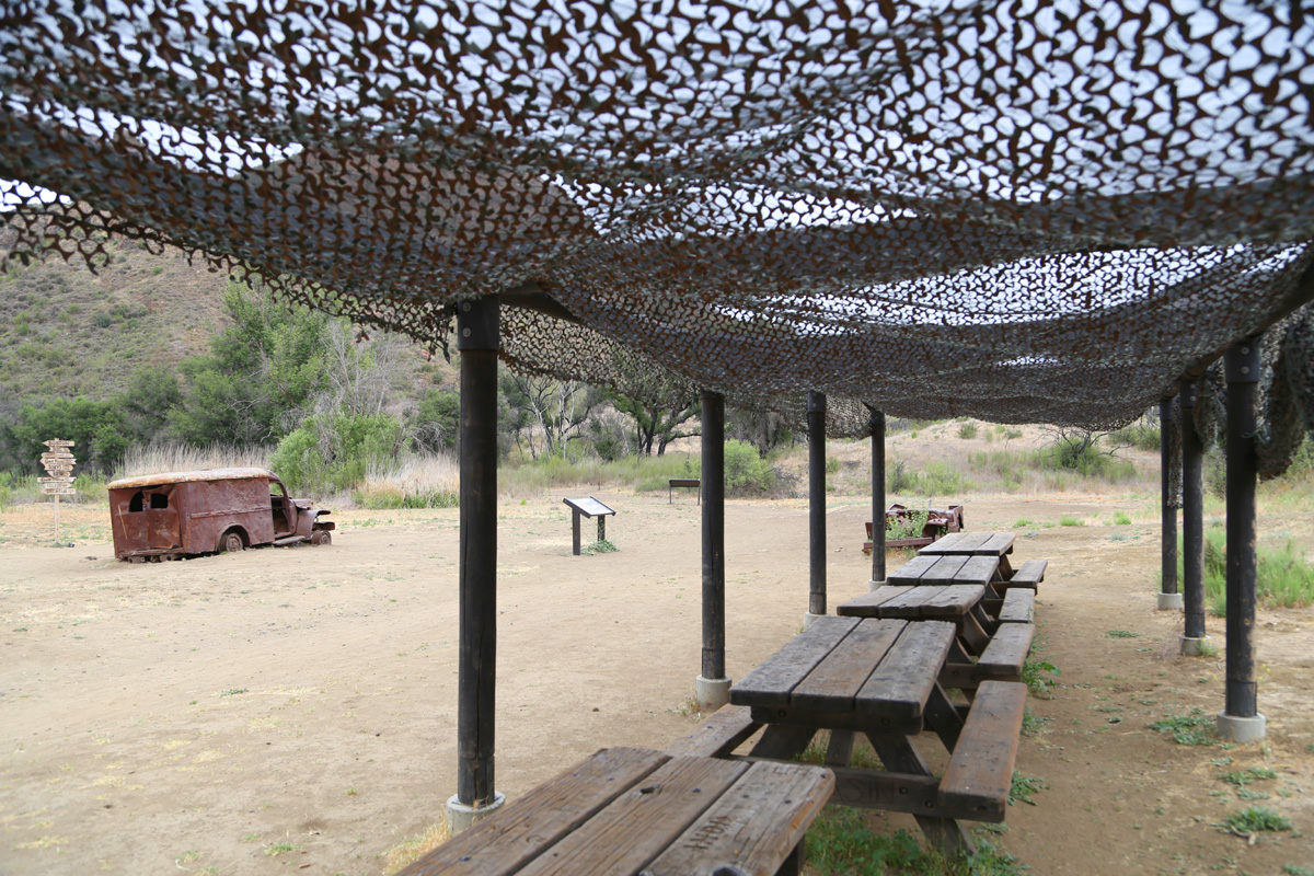 드라마 셋트는 모두 철거되었지만, 당시 분위기를 살려서 군용 그늘막으로 덮은 피크닉테이블을 일렬로 만들어 놓았다. 이 사진에는 이상하게 사람이 한 명도 없지만, 도착 전후로 다른 운동하거나 아침 산책하는 사람들이 많이 있었으며. 여기서 더 산 속으로 들어가는 로스트캐빈(Lost Cabin) 트레일도 있다고 하는데... 후문에 주차하는 바람에 여기까지도 많이 걸었으니까 그냥 돌아가자~