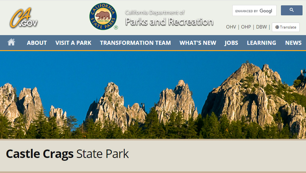 둘쨋날 새크라멘토에서 북쪽으로 3시간 정도 거리의 캐슬크랙(Castle Crags) 주립공원에서 이 바위산들을 보며 점심을 해먹으려 하는데, 새크라멘토 출발이 혹시 늦어지면 그냥 도로를 달리면서 보는 것으로 만족해야 할 수도 있다. 물론 저 바위산에 올라가는 트레일은 절대 할 시간이 없겠지만, 조금 더 북쪽에 있는 Hedge Creek Falls는 잠시라고 꼭 구경하고 계속해서 북쪽으로 올라간다.